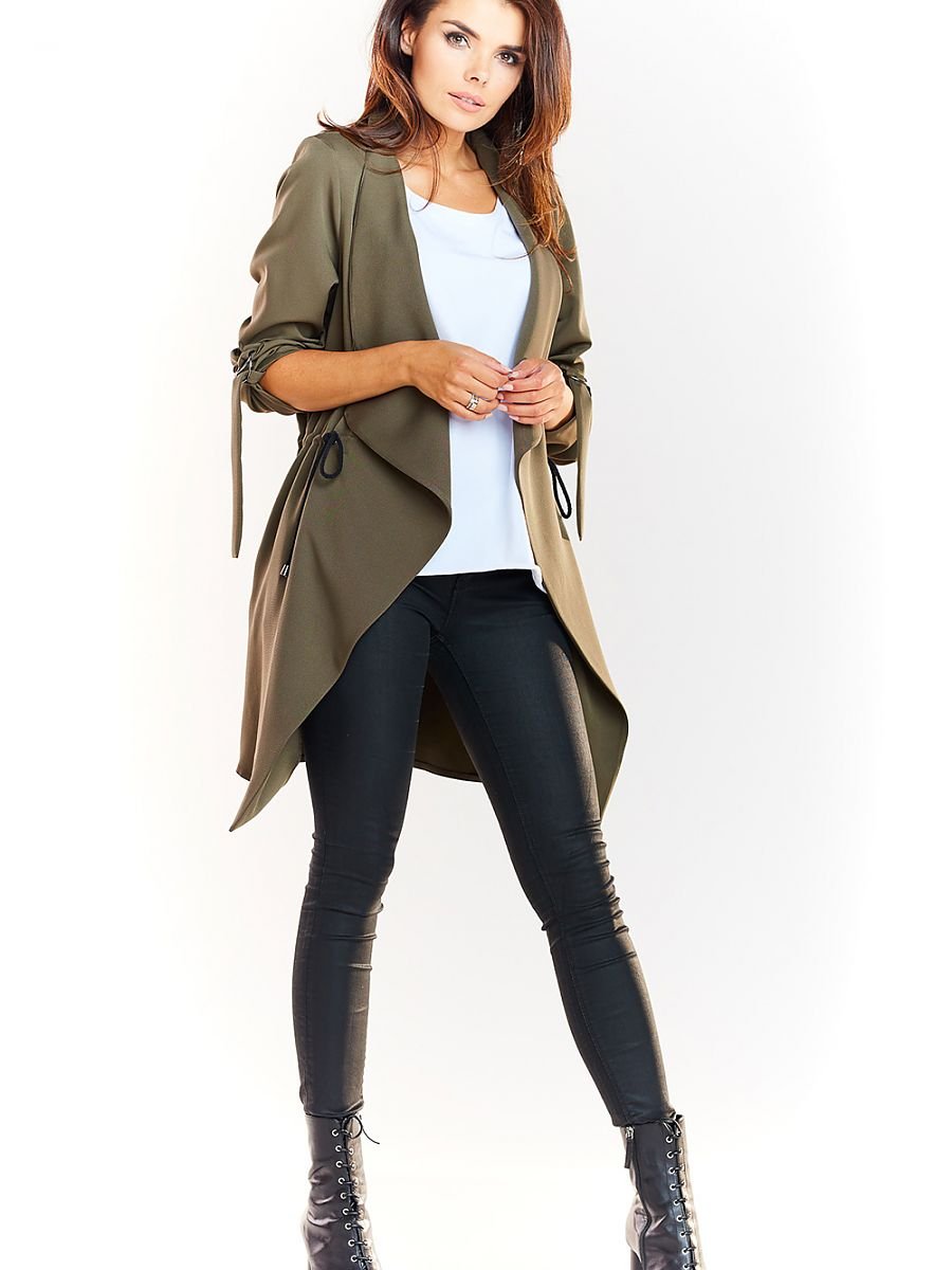 Luźna bluza o surdutowym kroju z długimi rękawami. Rękawy mają ozdobne aplikacje wykonane z metalu bez niklu, dzięki czemu można je podwinąć