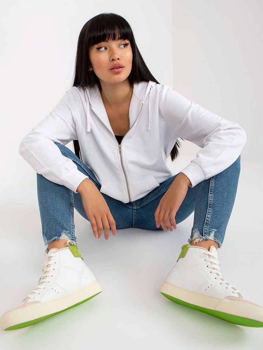 Bluza damska z długim rękawem, zapinana na zamek. Bluza z kapturem, na przodzie kieszenie wsuwane.