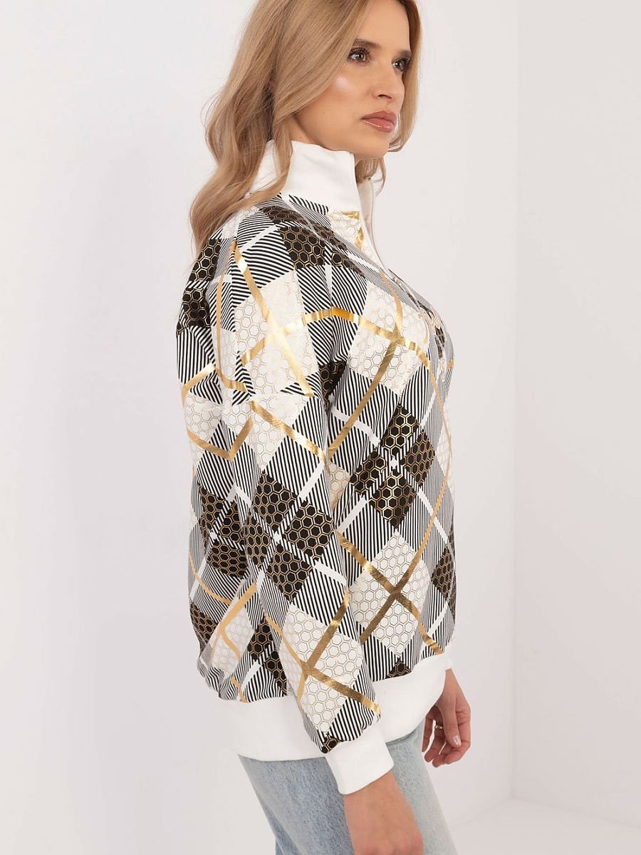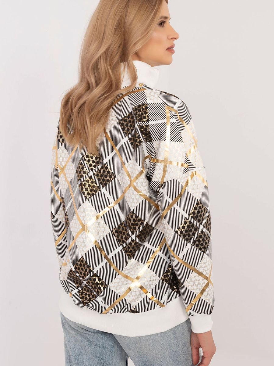 Stylowa bluza damska o casualowym charakterze to idealne połączenie wygody i modnego designu. Dominujący wzór w kratę nadaje jej wyjątkowego uroku, sprawiając, że świetnie sprawdzi się zarówno na co dzień, jak i w bardziej swobodnych stylizacjach. Bluza została wykonana z miękkiej bawełny z dodatkiem elastanu, dzięki czemu jest przyjemna w dotyku, oddychająca i elastyczna, co zapewnia pełen komfort noszenia. Standardowa długość oraz długi rękaw czynią ją uniwersalnym elementem garderoby. Model wyposażony jest w praktyczną stójkę zapinaną na zamek, która nie tylko podkreśla sportowy charakter bluzy, ale również chroni przed chłodem w chłodniejsze dni. To doskonały wybór dla kobiet ceniących styl i wygodę w codziennych stylizacjach.