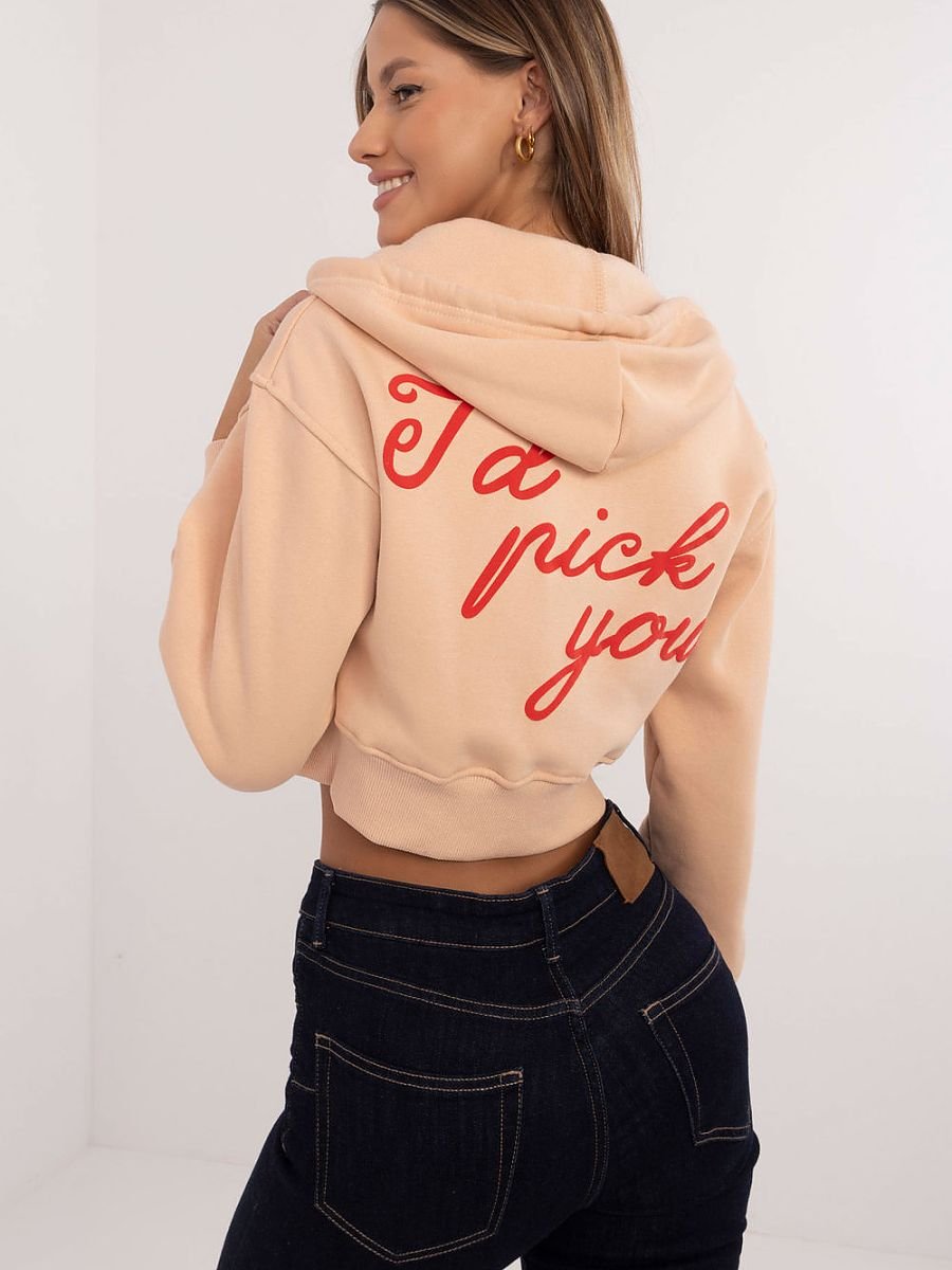 Krótka damska bluza w stylu casual to doskonały wybór na codzienne stylizacje. Wykonana z mieszanki bawełny i poliestru, zapewnia komfort noszenia, a ocieplenie wewnętrzne sprawia, że idealnie sprawdzi się w chłodniejsze dni. Bluza posiada długi rękaw, praktyczny kaptur oraz zapięcie na zamek, które ułatwia zakładanie i zdejmowanie. Na przodzie znajdują się wygodne wsuwane kieszenie, idealne na drobne przedmioty lub do ogrzania dłoni. Efektowne nadruki na przodzie oraz napisy na plecach dodają jej nowoczesnego, dynamicznego charakteru. To uniwersalny element garderoby, który łączy funkcjonalność z modnym wyglądem, idealny na co dzień.
