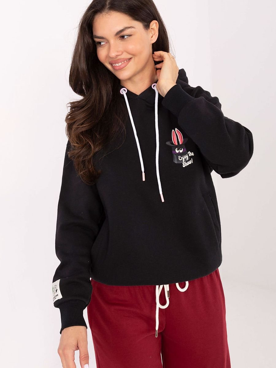 Bluza damska z kapturem w casualowym stylu, idealna na codzienne okazje. Wykonana z mieszanki bawełny i poliestru, zapewnia wygodę i przyjemne ciepło. Model o standardowej długości z długimi rękawami posiada kaptur z troczkami do regulacji. Na prawym rękawie znajduje się naszywka, a nadruk zdobi przód w wersji małej i plecy w wersji dużej. Praktyczne kieszenie wsuwane pozwalają schować drobiazgi, a gładki materiał sprawia, że bluza łatwo komponuje się z różnymi stylizacjami.