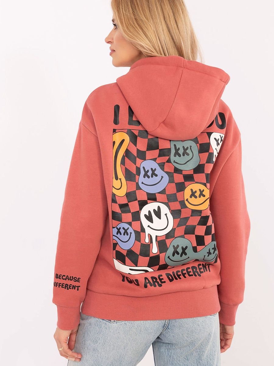 Damska bluza casualowa to doskonały wybór na co dzień, łączący wygodę z modnym designem. Wykonana z wysokiej jakości mieszanki bawełny i poliestru, jest miękka w dotyku, trwała i komfortowa w noszeniu. Bluza posiada standardową długość i długi rękaw, co czyni ją uniwersalnym elementem garderoby na chłodniejsze dni. Jej charakterystycznym elementem są nadruki i napisy rozmieszczone na plecach, przodzie oraz rękawie, które nadają bluzie nowoczesnego i oryginalnego stylu. Wygodny kaptur oraz wsuwane kieszenie zwiększają praktyczność i funkcjonalność, idealnie sprawdzając się w codziennym użytkowaniu. Bluza jest ocieplana, dzięki czemu zapewnia dodatkowy komfort termiczny w chłodniejsze dni. Brak zapięcia sprawia, że model ten jest łatwy do założenia i idealnie nadaje się do casualowych stylizacji z jeansami, legginsami lub dresami.