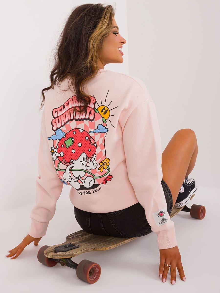 Damska bluza z ociepleniem, łącząca styl i komfort. Wykonana z mieszanki bawełny i poliestru, zapewnia ciepło i trwałość. Bluza ma standardową długość, długi rękaw oraz okrągły dekolt, co czyni ją uniwersalnym wyborem na co dzień. Wyróżnia się kolorowym, dużym nadrukiem na plecach, który dodaje jej wyrazistego charakteru. Idealna na chłodniejsze dni, łączy funkcjonalność z modnym designem, sprawdzając się zarówno w codziennych stylizacjach, jak i podczas aktywności na świeżym powietrzu.