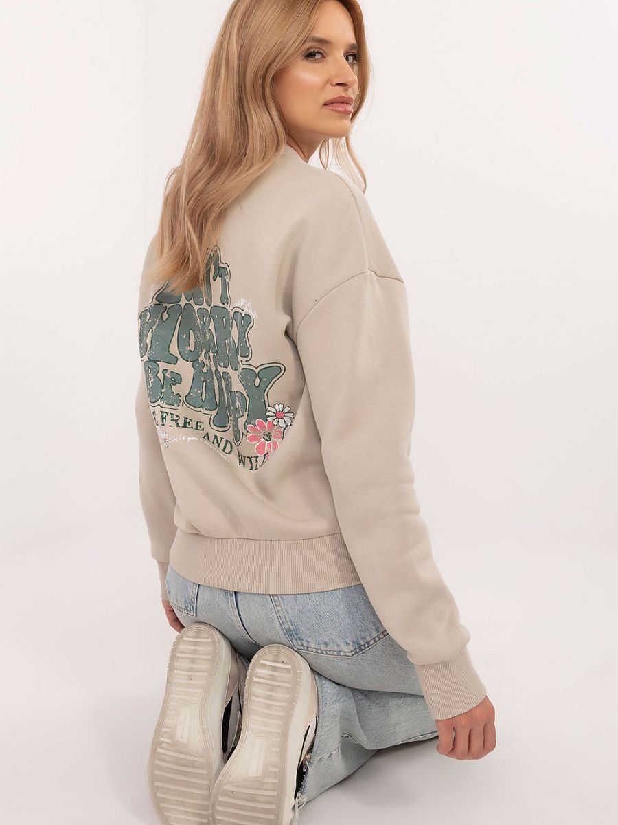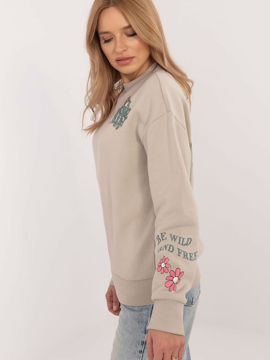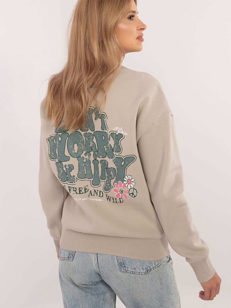 Wygodna i stylowa bluza damska, idealna na co dzień. Wykonana z miękkiego i trwałego połączenia bawełny i poliestru, zapewnia komfort noszenia oraz przyjemne ciepło w chłodniejsze dni. Casualowy styl sprawia, że bluza świetnie sprawdzi się w różnych codziennych stylizacjach. Model ma standardową długość, długi rękaw oraz klasyczny, okrągły dekolt, co czyni go uniwersalnym wyborem. Uwagę przyciągają oryginalne nadruki umieszczone na przodzie, plecach i rękawie, nadając bluzie unikalny charakter. Brak zapięcia podkreśla wygodny i luźny fason. To idealny wybór dla kobiet ceniących komfort i modny wygląd w casualowych zestawieniach. Świetnie pasuje do jeansów, legginsów lub spodni dresowych.