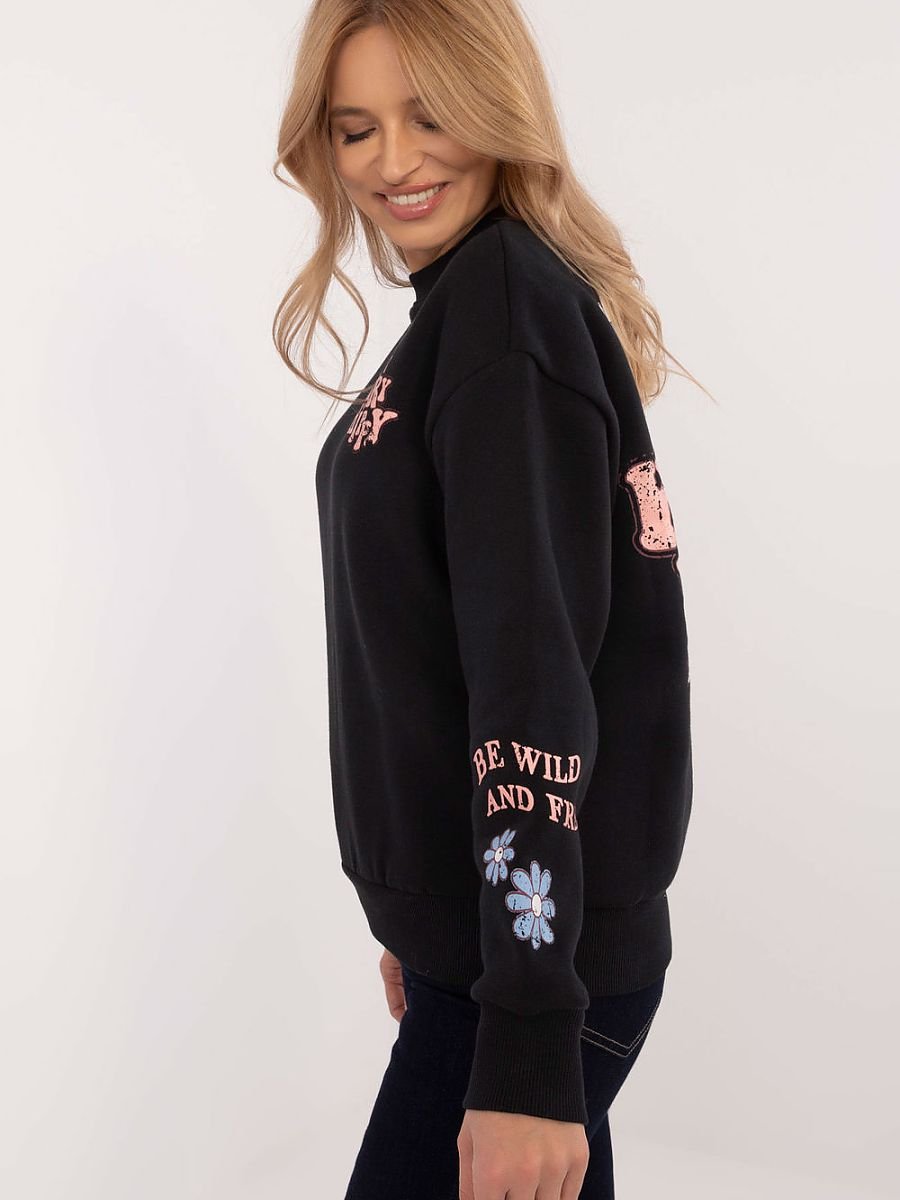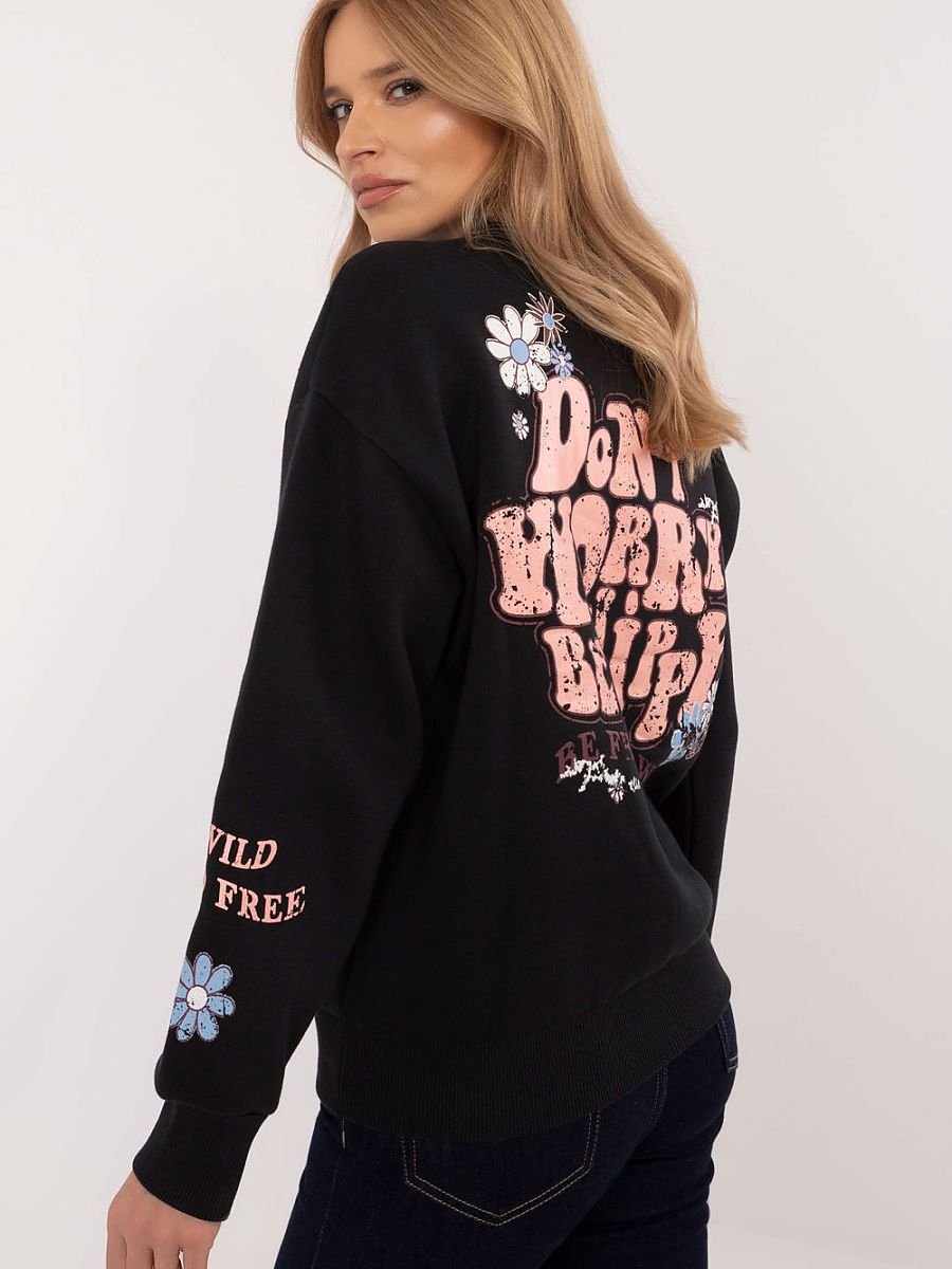 Wygodna i stylowa bluza damska, idealna na co dzień. Wykonana z miękkiego i trwałego połączenia bawełny i poliestru, zapewnia komfort noszenia oraz przyjemne ciepło w chłodniejsze dni. Casualowy styl sprawia, że bluza świetnie sprawdzi się w różnych codziennych stylizacjach. Model ma standardową długość, długi rękaw oraz klasyczny, okrągły dekolt, co czyni go uniwersalnym wyborem. Uwagę przyciągają oryginalne nadruki umieszczone na przodzie, plecach i rękawie, nadając bluzie unikalny charakter. Brak zapięcia podkreśla wygodny i luźny fason. To idealny wybór dla kobiet ceniących komfort i modny wygląd w casualowych zestawieniach. Świetnie pasuje do jeansów, legginsów lub spodni dresowych.