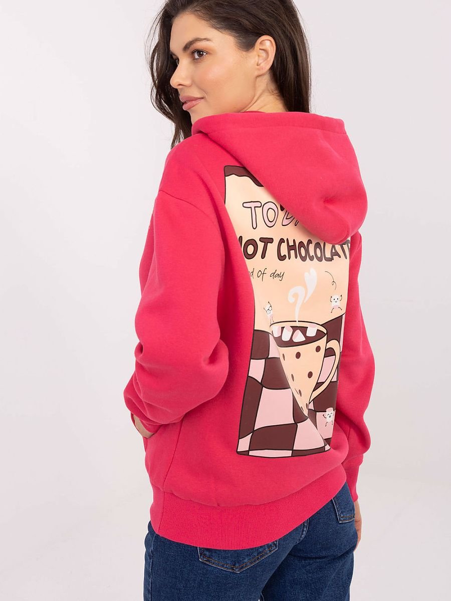 Damska bluza o casualowym charakterze, idealna na co dzień, łączy wygodę z modnym wyglądem. Wykonana z miękkiej i przyjemnej w dotyku dzianiny będącej mieszanką bawełny i poliestru, zapewnia komfort noszenia przez cały dzień. Model o standardowej długości z długimi rękawami i kapturem wyposażonym w troczki do regulacji. Na przodzie znajduje się praktyczna kieszeń typu kangurek, a dodatkowo bluza ozdobiona jest napisem z przodu oraz nadrukiem na plecach, co dodaje jej nowoczesnego i miejskiego charakteru. Bluza nie posiada zapięcia, co podkreśla jej swobodny styl. Idealna do jeansów, legginsów czy spodni dresowych, sprawdzi się w każdej codziennej stylizacji.