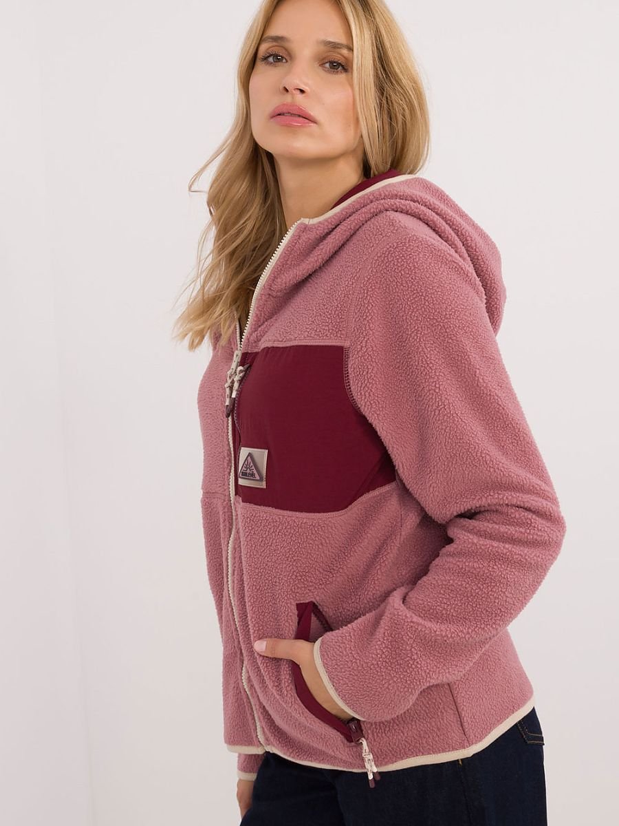 Damska bluza w stylu casual, wykonana z poliestru, idealna na codzienne wyjścia. Charakteryzuje się gładkim wzorem, co nadaje jej prostoty i uniwersalności. Posiada standardową długość oraz długie rękawy, co zapewnia wygodę i ciepło. Wyposażona w praktyczny kaptur oraz zapięcie na suwak, które dodaje funkcjonalności. Dwie wsuwane kieszenie po bokach oraz kieszonka na zamek na piersi zapewniają miejsce na drobiazgi i podkreślają sportowy, a zarazem stylowy charakter bluzy. To doskonały wybór na co dzień, łączący wygodę z modnym wyglądem.