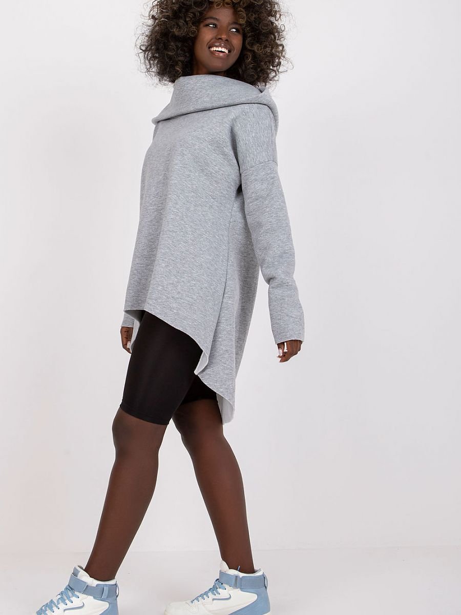 Bluza damska z długim rękawem oraz kapturem. Bluza o luźnym kroju z asymetrycznym dołem.