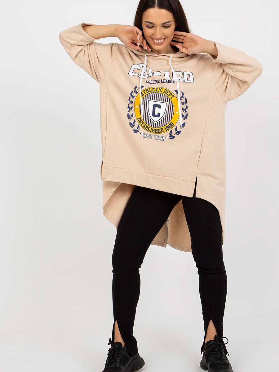 Bluza damska o luźnym asymetrycznym kroju, z długim rękawem oraz kapturem.