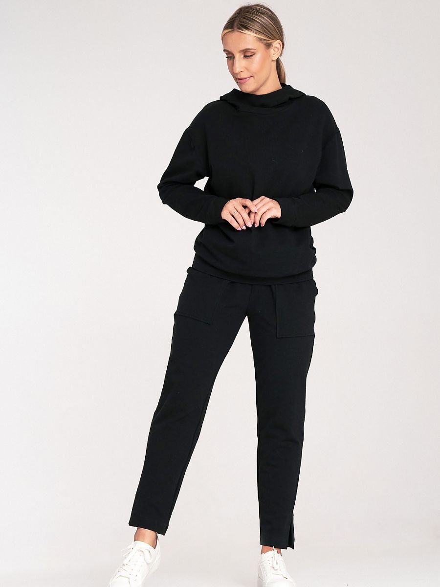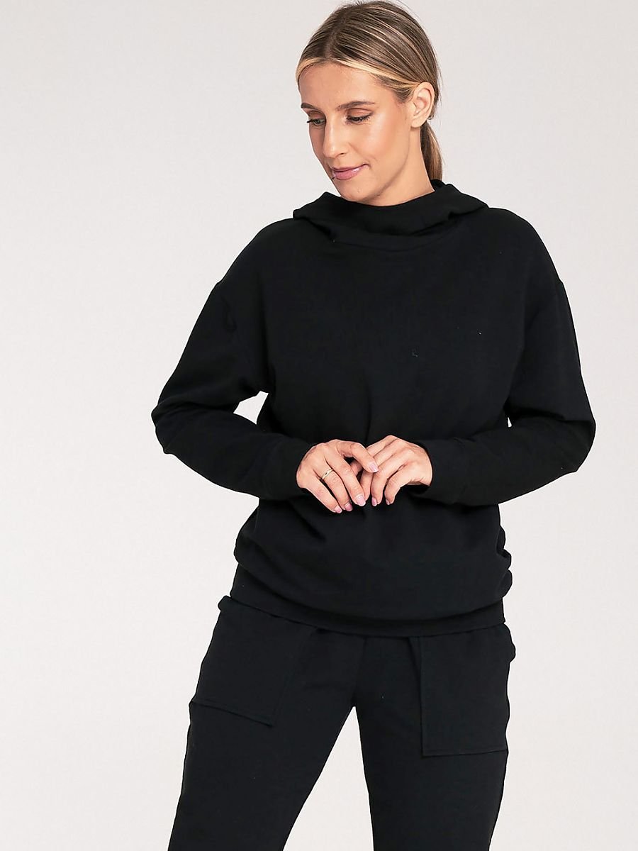 Bawełniana bluza z długim rękawem, luźną stójką oraz kapturem. Dół bluzy oraz rękawy zakończone ściągaczami.