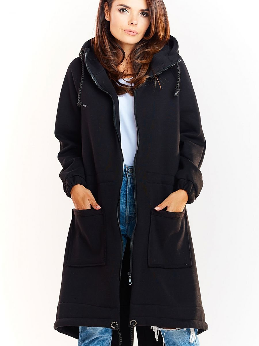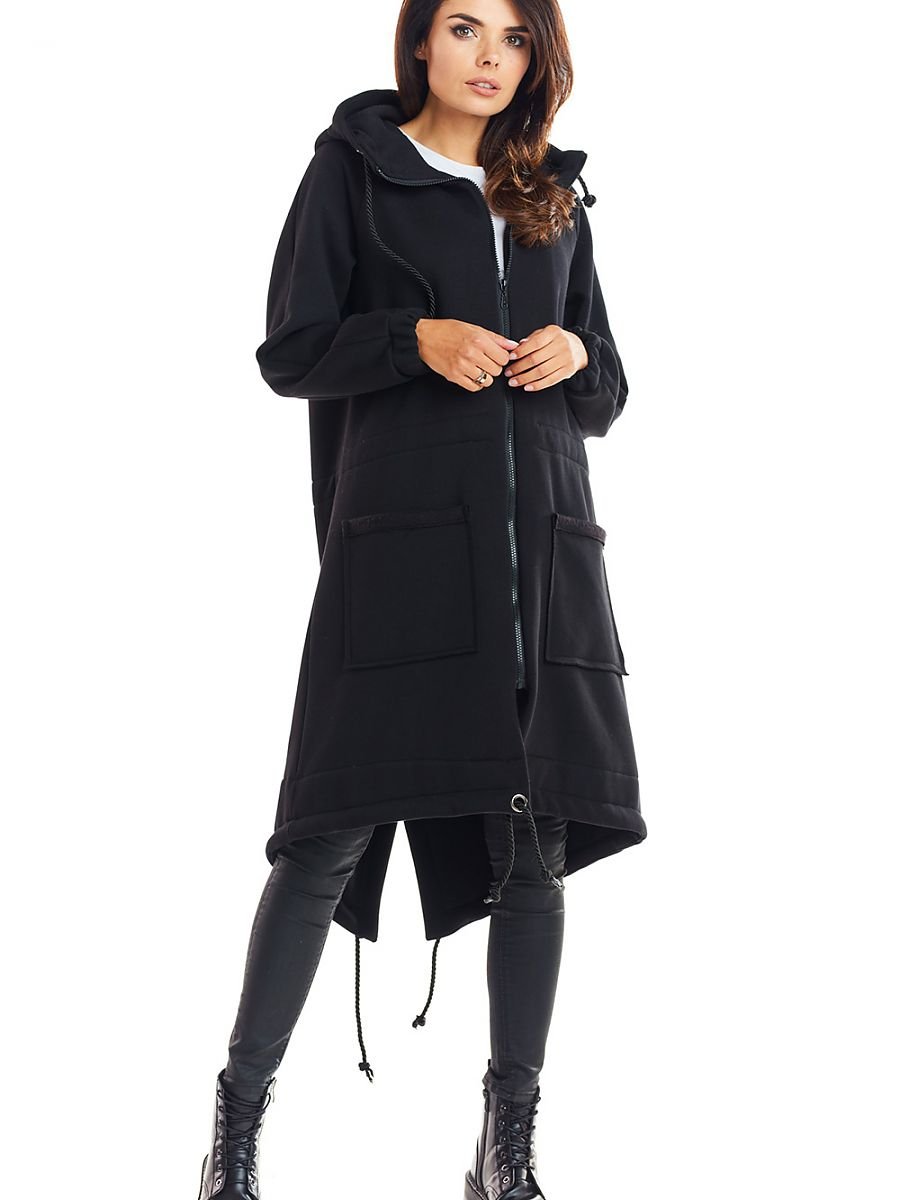 Ciepła parka uszyta z miękkiego dresu. Idealna na jesień i zimę. Z przodu są kieszenie, zapinana na zamek. Bluzę można dopasować do sylwetki, dzięki temu że w talii jest sznurek. Absolutny must have sezonu.