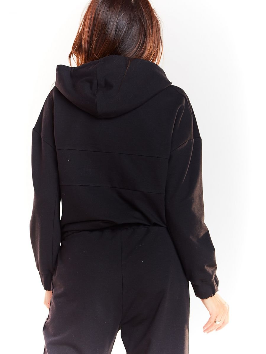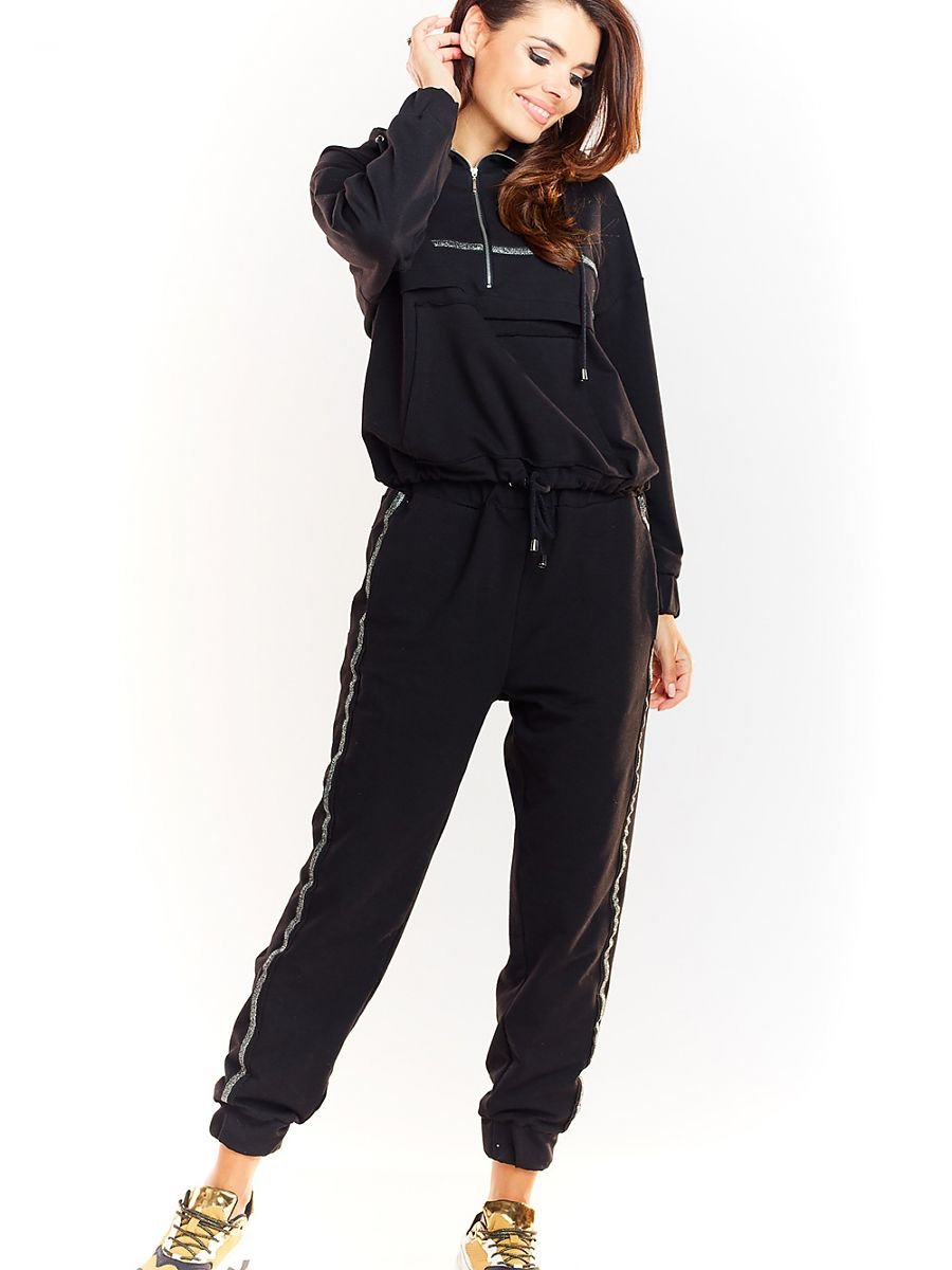Bluza z kapturem o luźnym kroju.Wykonany z miękkiego, przyjemnego w dotyku materiału. Z przodu naszyty błyszczący pasek absolutny must have sezonu. Świetnie wygląda w komplecie ze spodniami Infinite You M231. Zaprojektowano i uszyto w Polsce.