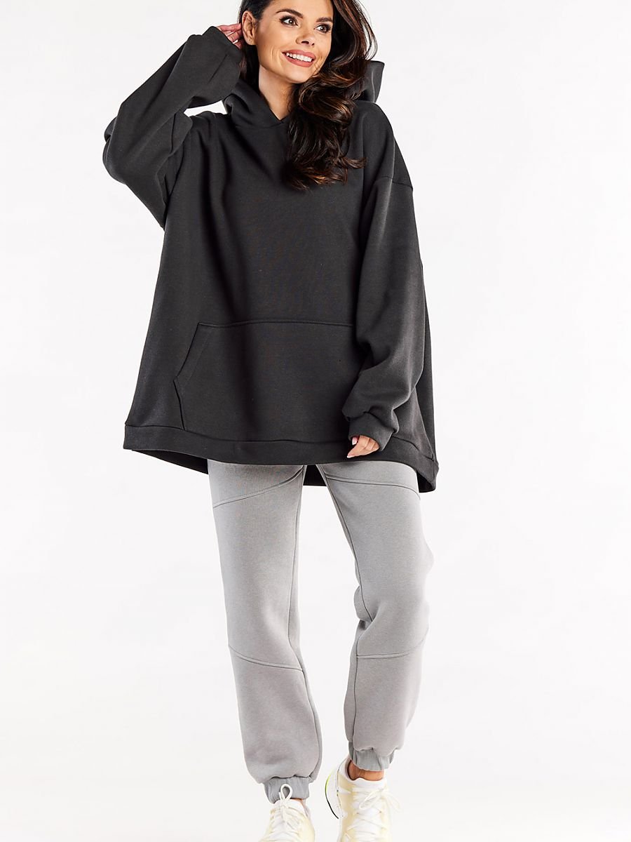 Bluza oversize z długim rękawem, kieszenią typu kangurek oraz obszernym kapturem.