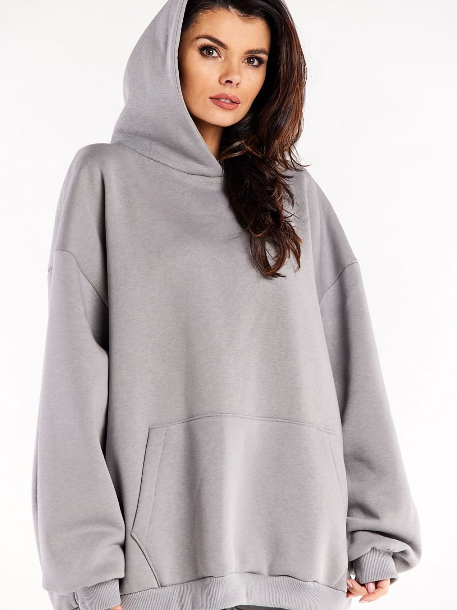 Bluza oversize z długim rękawem, kieszenią typu kangurek oraz obszernym kapturem.