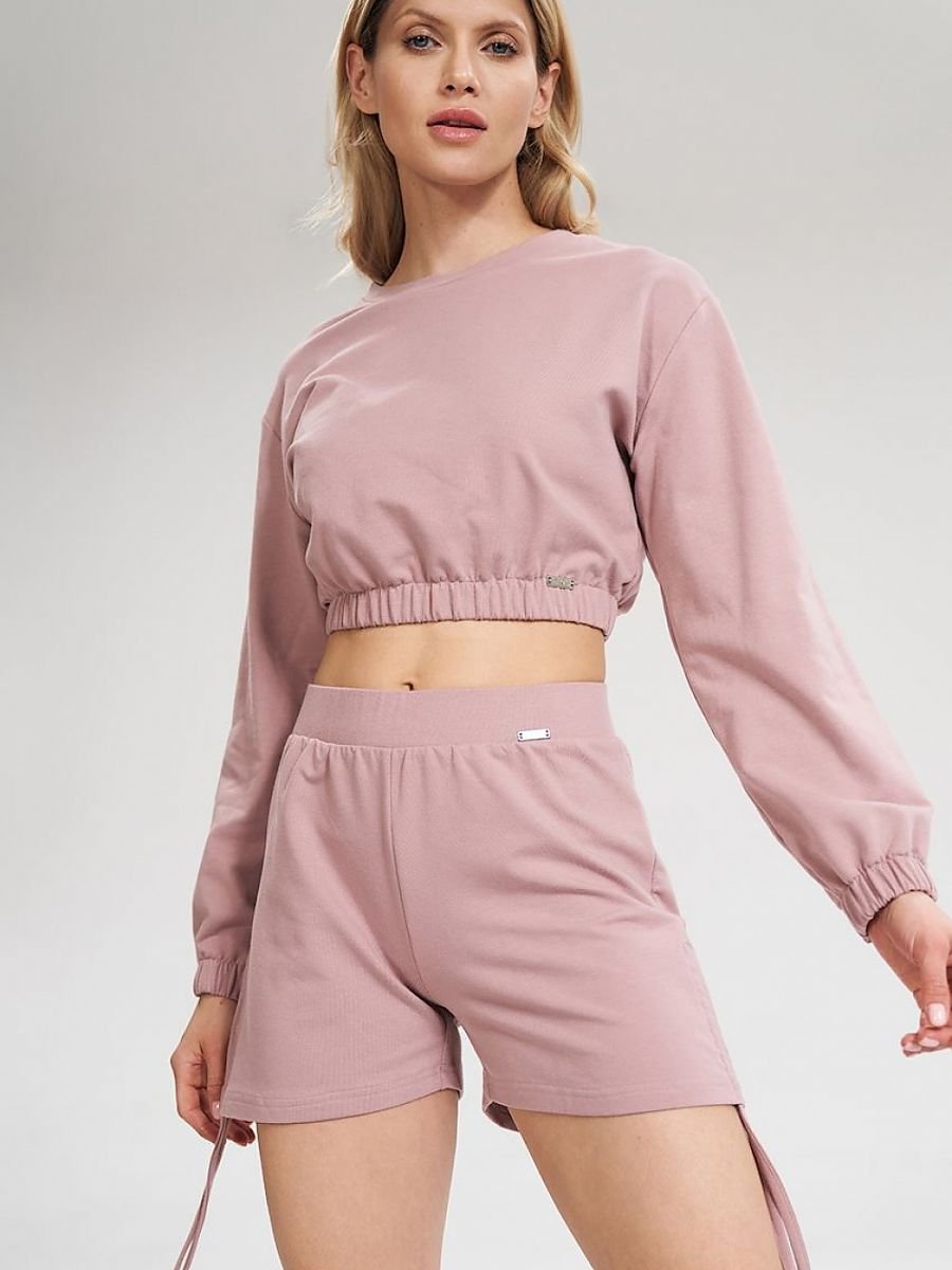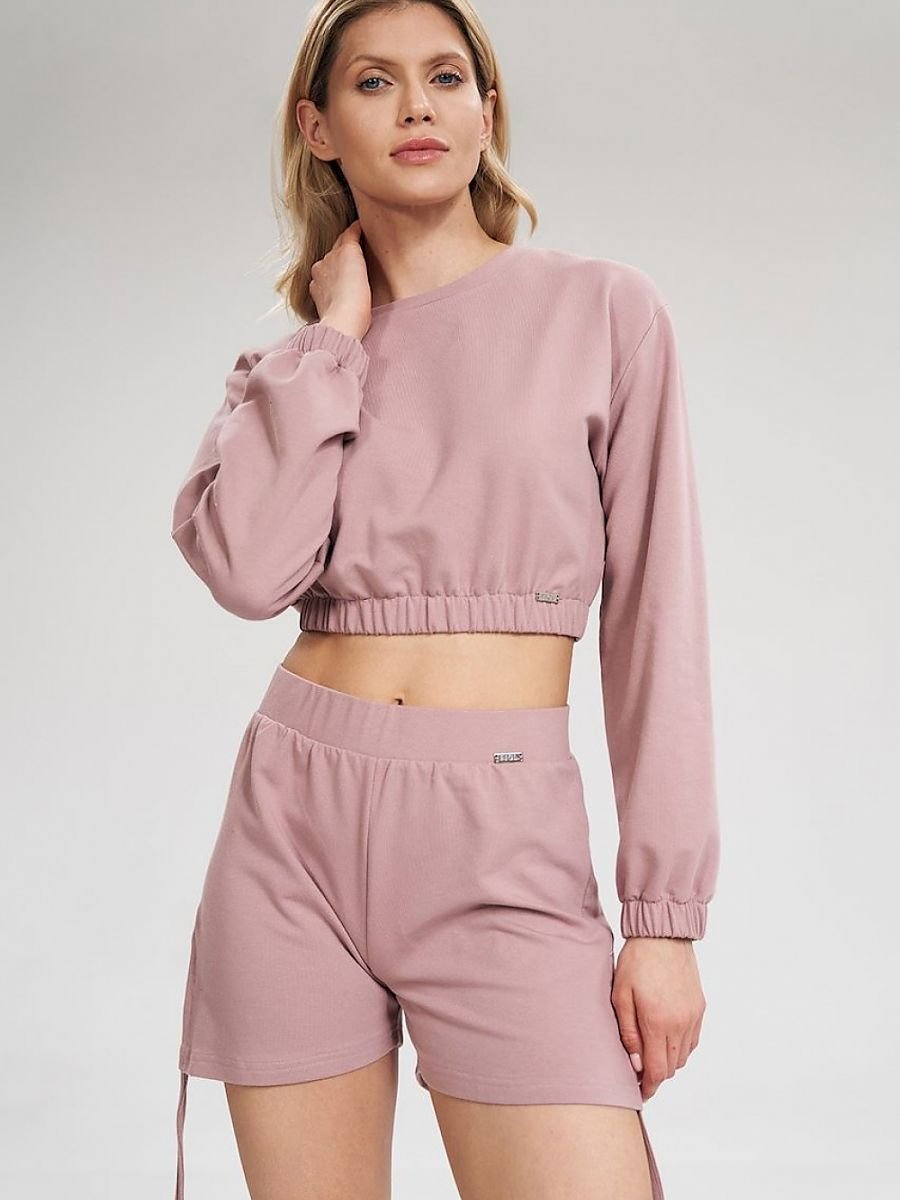 Bluza typu crop z długim rękawem. Rękawy i dół bluzy wykończone szeroką gumą. Półokrągły dekolt.