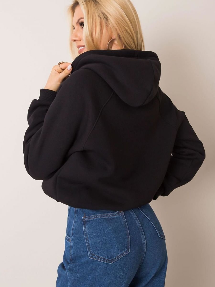 Bluza damska z długim rękawem i kapturem. U dołu troczek do wiązania. Propozycja na co dzień.