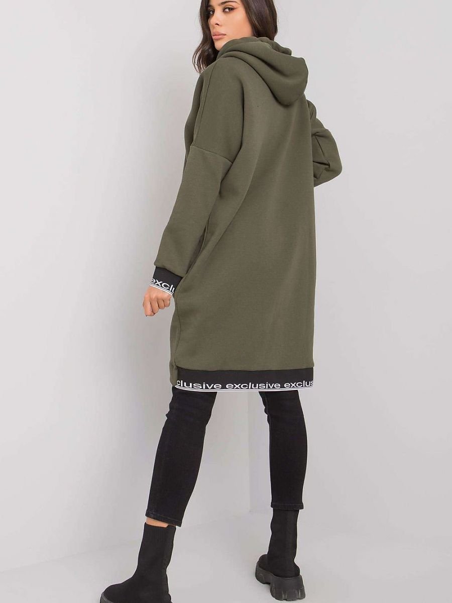 Bluza damska przedłużana zapinana na zamek w kolorze khaki. Bluza posiada kaptur i kieszenie wsuwane.