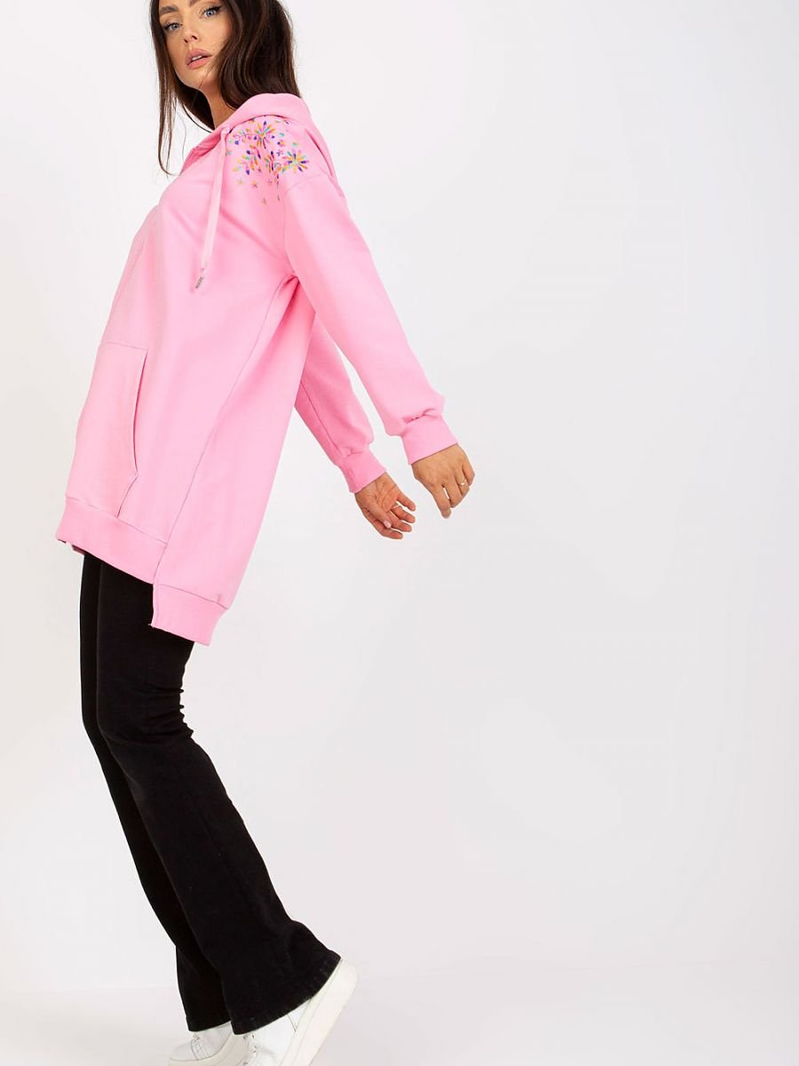 Bluza damska z długim rękawem, zapinana na zamek. Bluza z kapturem, na przodzie kieszonka. Na ramionach ciekawy haft.
