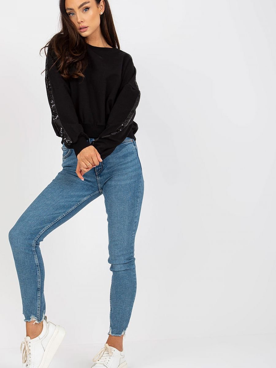 Bluza damska z długim rękawem oraz okrągły dekolt. Rękawy ozdobione cekinami.