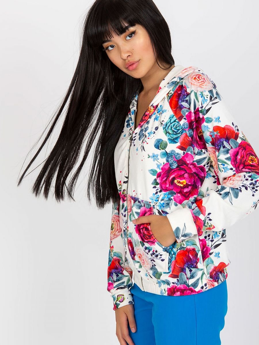 Bluza damska z długim rękawem oraz kapturem. Bluza zapinana na zamek, Na przodzie kieszenie wsuwane.
