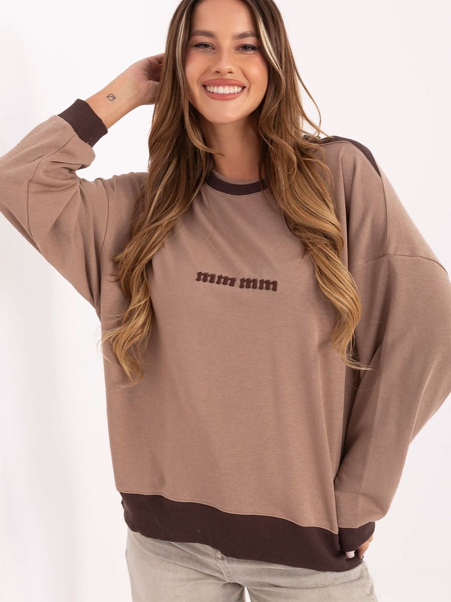 Casualowa bluza damska z haftowanym napisem to stylowa propozycja na codzienne okazje. Wykonana z miękkiej bawełny z dodatkiem poliestru zapewnia komfort noszenia i trwałość materiału. Model o standardowej długości z długim rękawem i klasycznym okrągłym dekoltem został wykończony kontrastowymi ściągaczami przy rękawach i dole, co dodaje bluzie nowoczesnego, modnego charakteru. Doskonała do casualowych stylizacji z jeansami lub spodniami dresowymi.