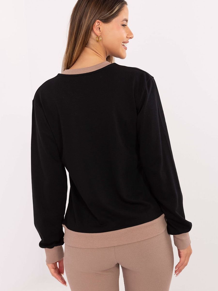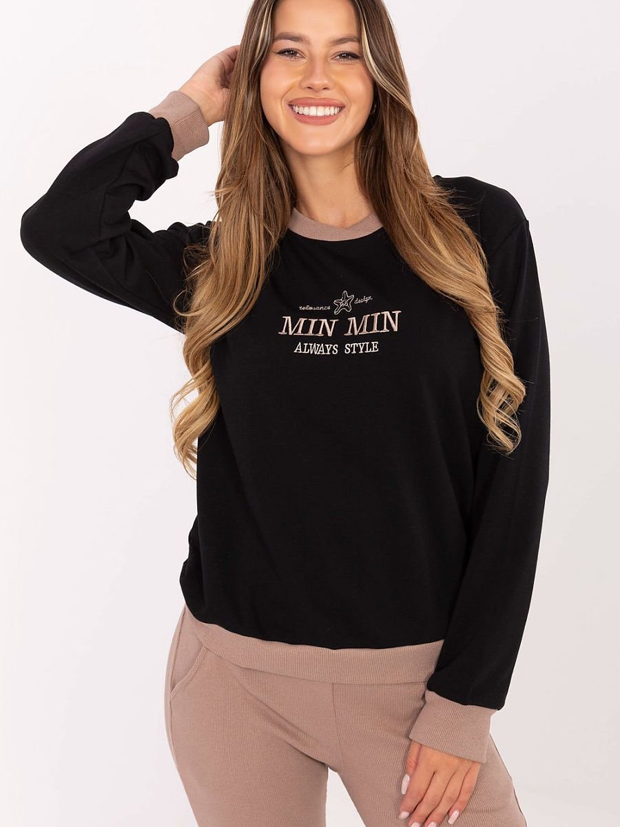 Casualowa bluza damska wykonana z miękkiej mieszanki bawełny i poliestru, łącząca komfort noszenia z modnym designem. Klasyczny okrągły dekolt i długie rękawy zapewniają wygodę, a standardowa długość sprawia, że bluza doskonale pasuje do codziennych stylizacji. Przód zdobi subtelny haft, który nadaje całości eleganckiego charakteru, a kontrastowe wykończenia dodają nowoczesnego, wyrazistego akcentu. Model bez zapięcia, idealny do casualowych zestawów na co dzień.