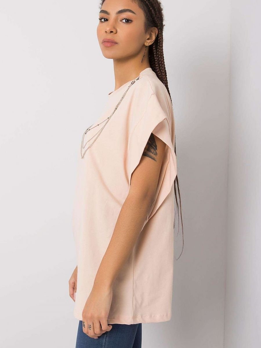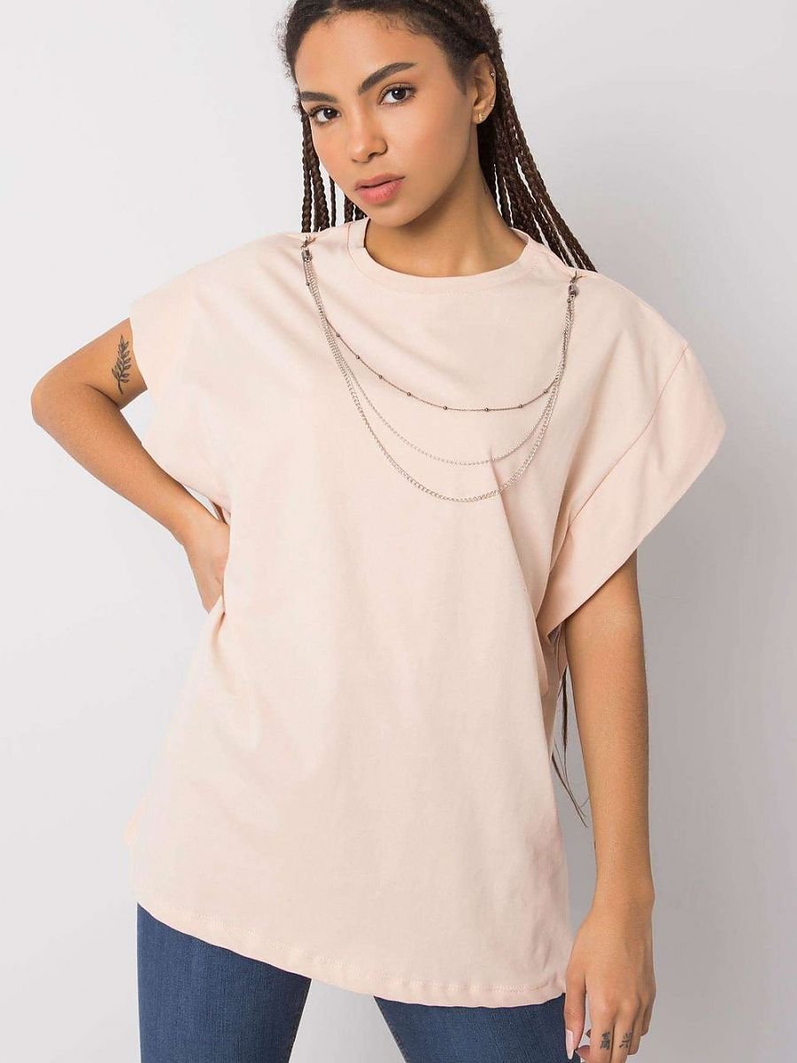 Bluzka o luźnym kroju, z krótkim rękawem. Do kompletu odpinany łańcuszek.