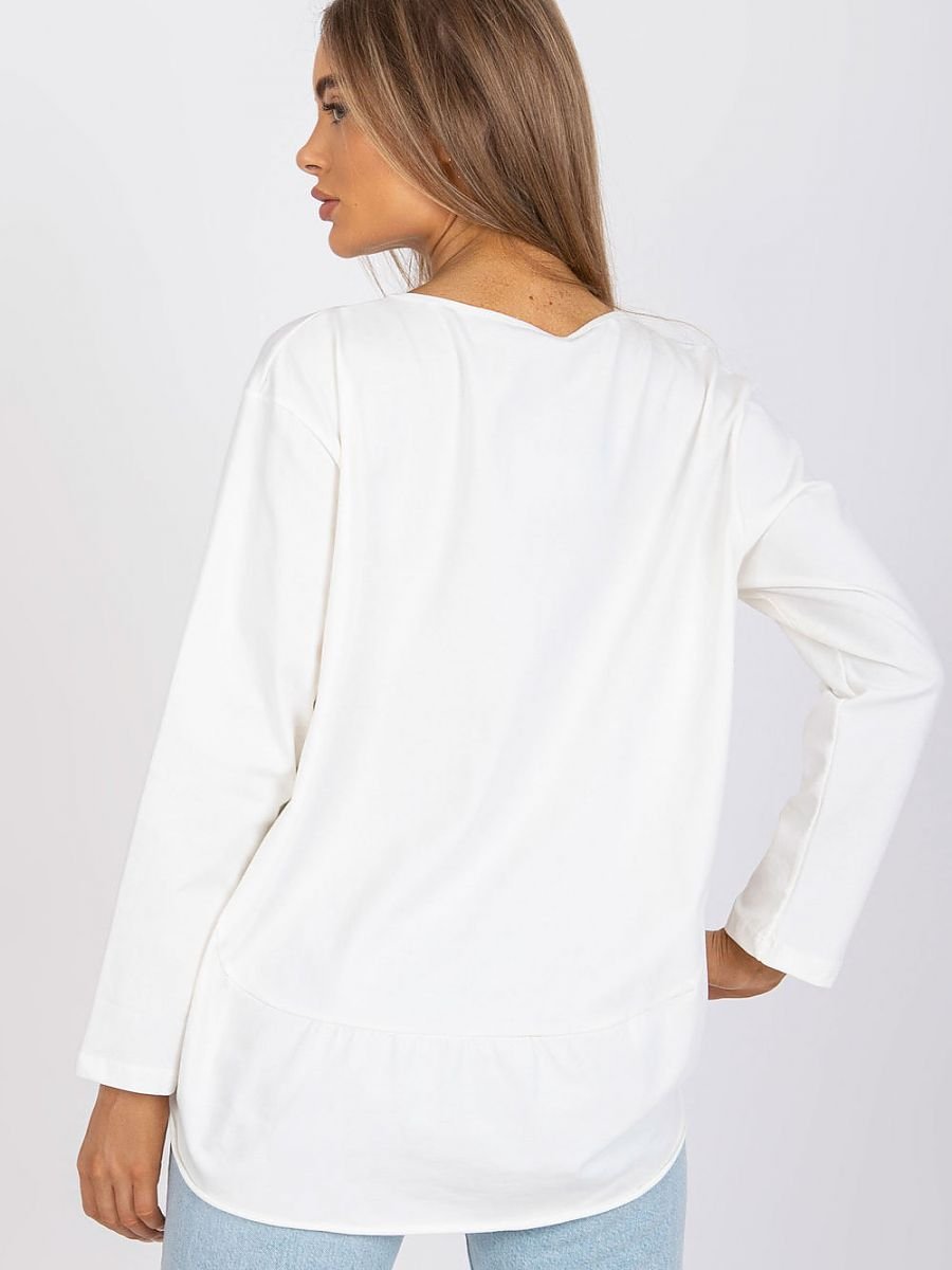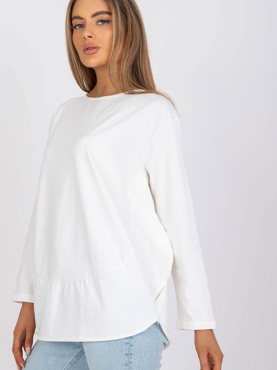 Bluzka damska z długim rękawem oraz okrągłym dekoltem. Bluzka o luźnym kroju z półokrągłym dołem.