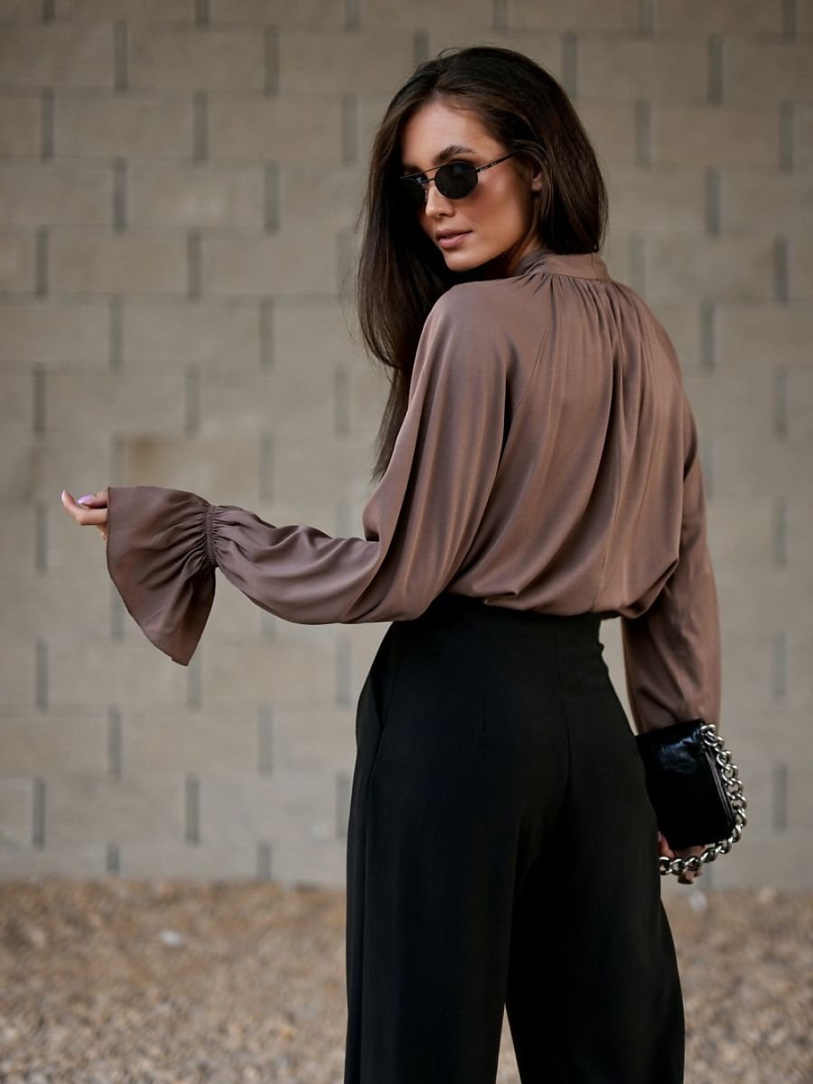 Model Isabel to bluzka z wiskozy wyróżniająca się eleganckim wiązaniem pod szyją oraz dekoracyjnymi mankietami z falbaną. Lekka, oddychająca tkanina w połączeniu z luźnym krojem zapewnia wygodę i subtelnie podkreśla sylwetkę. Starannie uszyta w Polsce, łączy klasyczną elegancję z nowoczesnym charakterem. Isabel sprawdzi się zarówno w biurowych stylizacjach z eleganckimi spodniami, jak i w wieczorowych zestawach z dopasowaną spódnicą. Zaprojektowana i wykonana w Polsce.