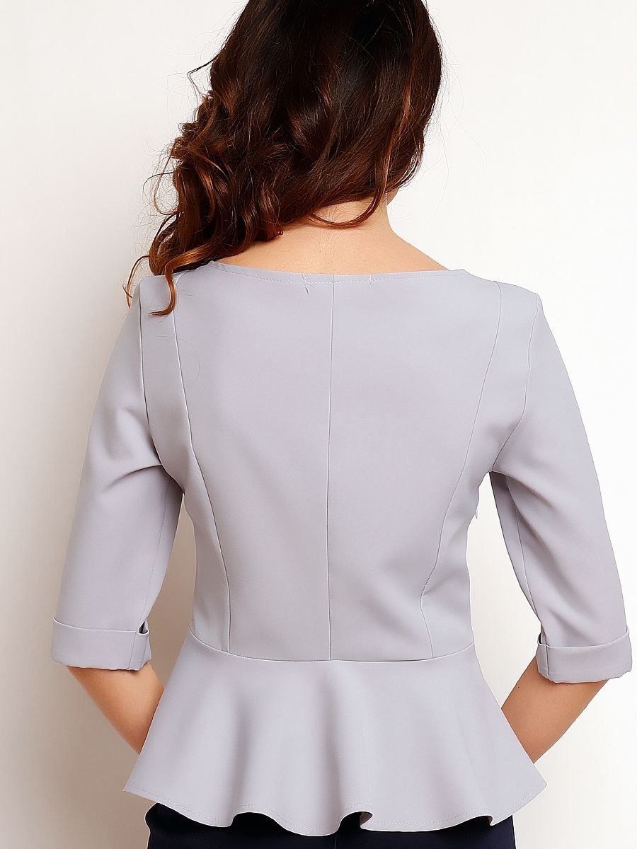 Subtelna bluzka z rękawem 3/4 i baskinką u dołu. Świetna propozycja na wiele okazji.