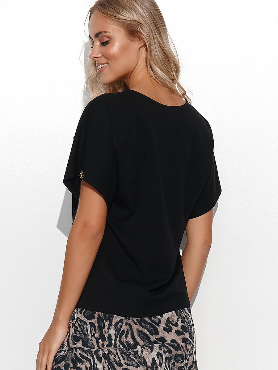Prosta i swobodna bluzka damska. Niezwykle uniwersalna baza dla wielu wiosenno-letnich stylizacji. Bluzka posiada dekolt w serek, dzięki czemu optycznie wydłuża szyję. Zapewnia niezwykłą wygodę, nie opina brzucha czy pleców. Posiada luźne krótkie rękawy. Możesz założyć ją do długiej i eleganckiej spódnicy lub przewrotnie zestawić ją z krótkimi szortami. Na sportowo i elegancko, stylizuj tę bluzkę jak chcesz. Przestrzeń kreatywnych możliwości poszerza dostępność wielu wariantów kolorystycznych. Wybierz swój ulubiony. Wyraź siebie poprzez modę.