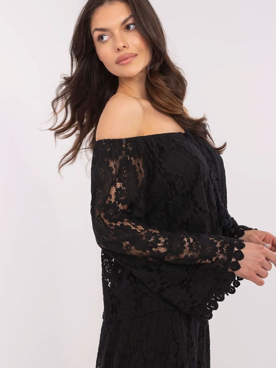 Elegancka bluzka z ażurowej koronki to kobiecy i stylowy wybór na wiele okazji, od codziennych stylizacji po bardziej wizytowe wyjścia czy imprezy. Wykonana z wysokiej jakości mieszanki bawełny i nylonu, z delikatną podszewką, zapewnia komfort noszenia i efektowne wykończenie. Krótka długość i hiszpański dekolt pięknie eksponują ramiona, nadając całości zmysłowego charakteru. Długie rękawy z subtelnej koronki dodają lekkości, a wiązanie z przodu podkreśla talię i wprowadza romantyczny akcent. Bluzka świetnie komponuje się zarówno z eleganckimi spodniami, jak i spódnicą idealna na spotkania, do pracy, czy wieczorne wyjścia. To połączenie klasy i nowoczesnego stylu, które zawsze robi wrażenie.