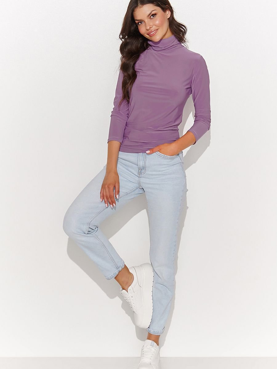 Funkcjonalna bluzka damska wykonana z elastycznej, nieprzezroczystej tkaniny to klasyk wśród bluzek. Dekolt w postaci praktycznego golfu w połączeniu z długim rękawem, otuli w chłodniejsze dni. Natomiast pozłacana blaszka w górnej części pleców, dodaje jej subtelnej elegancji. Dzięki prostej formie, perfekcyjnie odnajduje się w casualowych stylizacjach, które możesz nosić zarówno do biura jak i na wyjścia na miasto. Golf damski doskonale współgra zarówno z dopasowanymi rurkami jak i spodniami typu mom fit. Ta bluzka to połączenie funkcjonalności z elegancją w efekcie dając udany przepis na look.