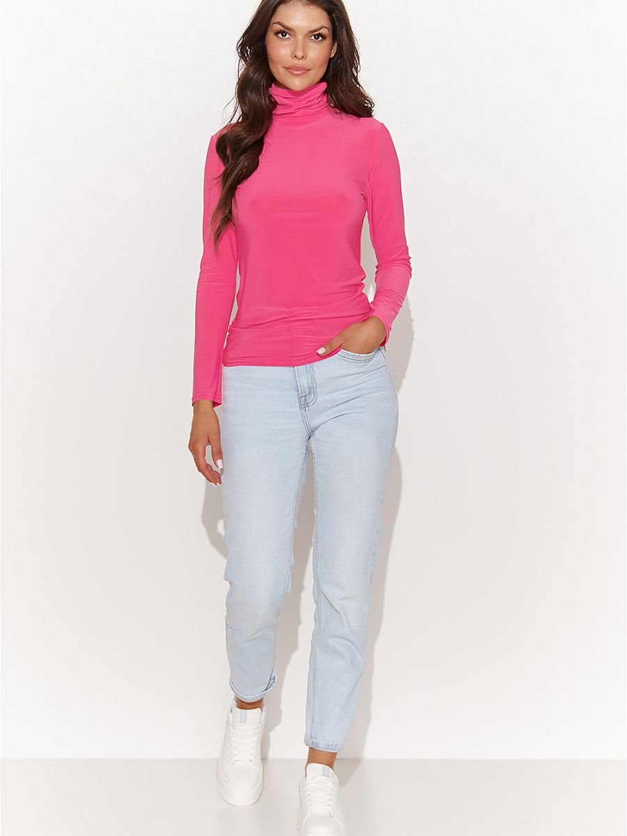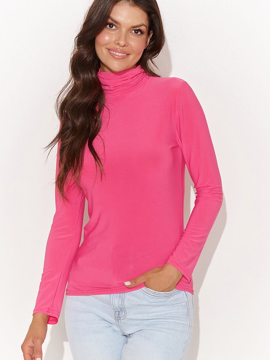 Funkcjonalna bluzka damska wykonana z elastycznej, nieprzezroczystej tkaniny to klasyk wśród bluzek. Dekolt w postaci praktycznego golfu w połączeniu z długim rękawem, otuli w chłodniejsze dni. Natomiast pozłacana blaszka w górnej części pleców, dodaje jej subtelnej elegancji. Dzięki prostej formie, perfekcyjnie odnajduje się w casualowych stylizacjach, które możesz nosić zarówno do biura jak i na wyjścia na miasto. Golf damski doskonale współgra zarówno z dopasowanymi rurkami jak i spodniami typu mom fit. Ta bluzka to połączenie funkcjonalności z elegancją w efekcie dając udany przepis na look.