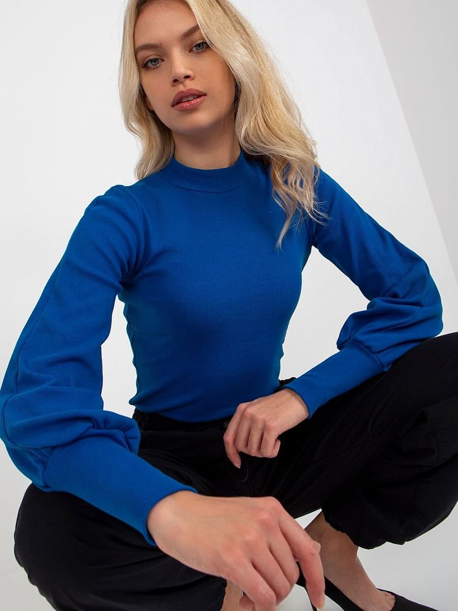 Bluzka z długim rękawem, wykonana z prążkowanej tkaniny. Rękawy zakończone szerokimi ściągaczami.