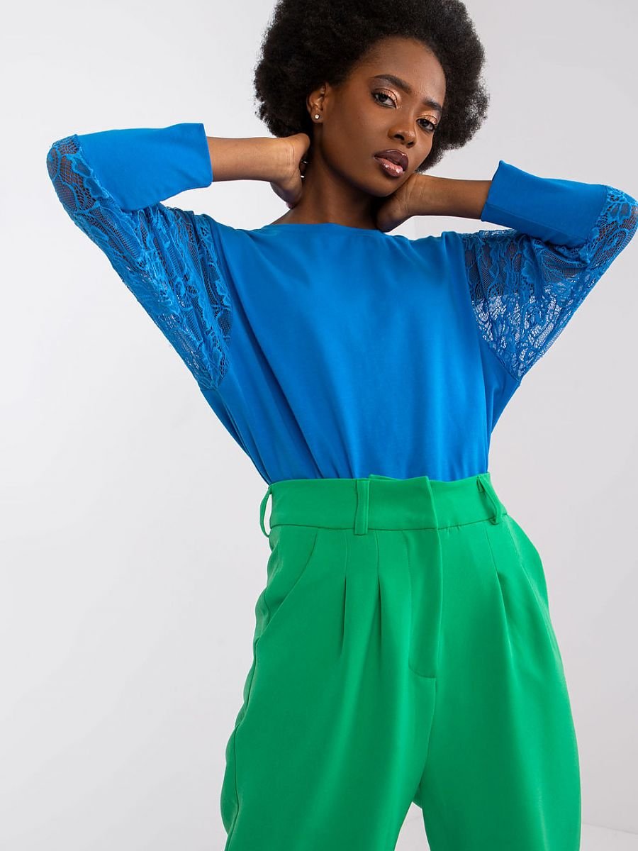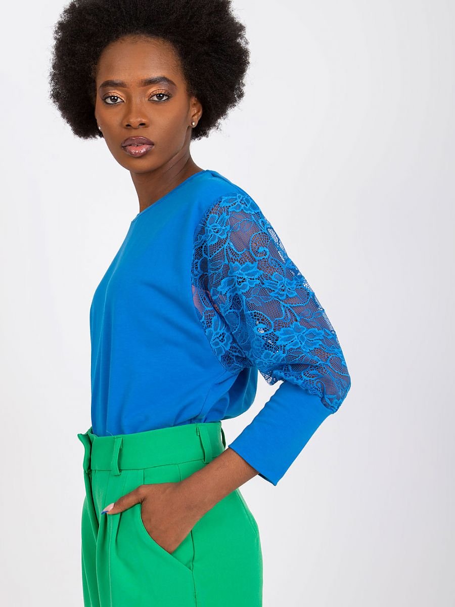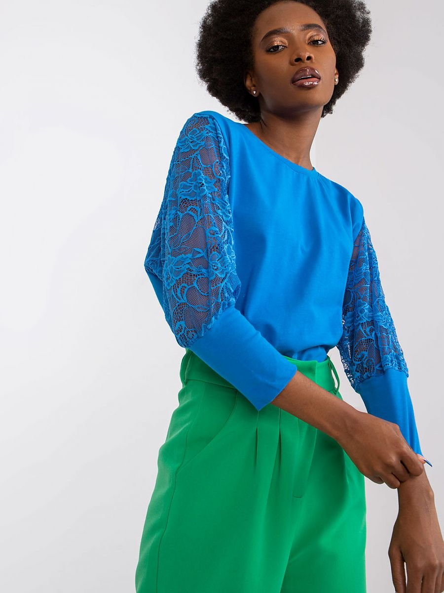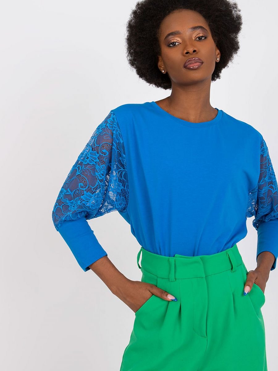 Bluzka o prostym kroju z koronkowymi rękawami 3/4 oraz okrągłym dekoltem.