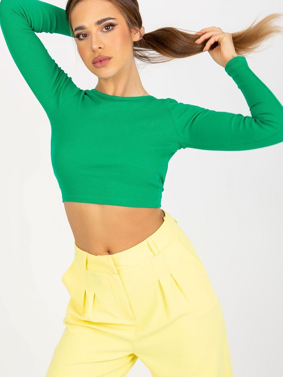 Krótka bluzka o ciekawym kroju z długim rękawem. Na plecach bluzka posiada wycięcie i wiązanie.
