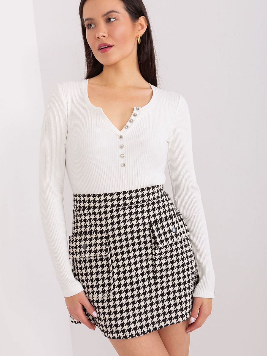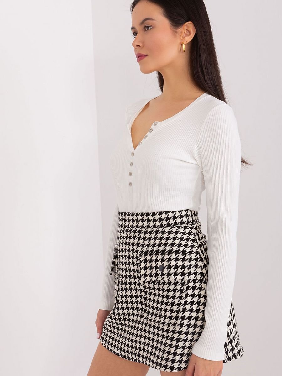 Ta bluzka damska to idealny wybór na co dzień i do pracy. Jej dekolt w serek ozdobiony urokliwymi guzikami nadaje jej elegancji, jednocześnie zachowując styl casual. Materiał w prążki nadaje bluzce charakteru, a dopasowany krój podkreśla sylwetkę. Wykonana z wygodnej bawełny, gwarantuje komfort noszenia. To doskonały wybór na różnorodne okazje, od spotkań biznesowych po casualowe wyjścia. Bluzka z długim rękawem i standardową długością sprawdzi się w każdej sytuacji.