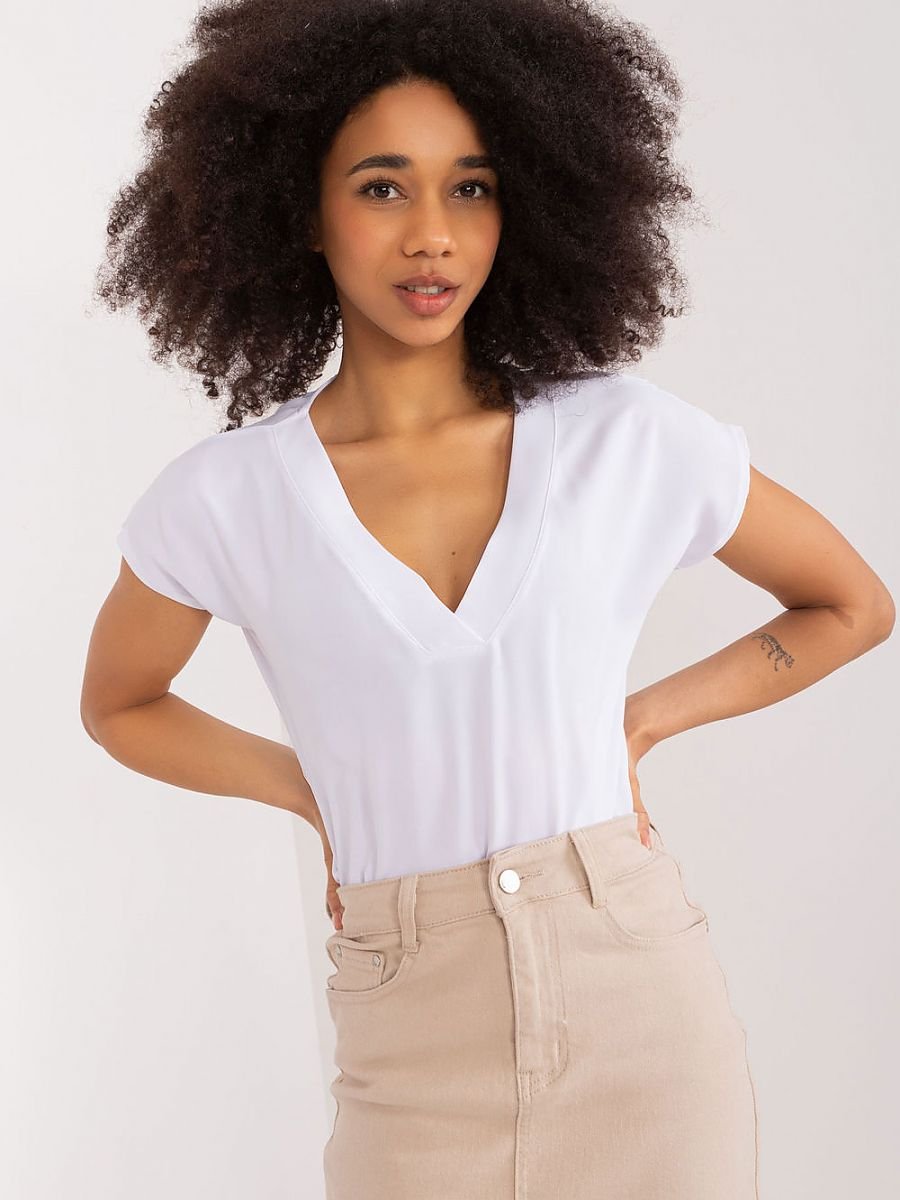 Bluzka casual zachwyca swoją prostotą i elegancją, perfekcyjnie pasującą do codziennych stylizacji. Jej prosty krój pozwala na swobodę ruchów i wygodę noszenia. Wykonana głównie z gładkiego poliestru, ten materiał dodaje bluzce wyjątkowej lekkości i przyjemności noszenia. Standardowa długość i krótki rękaw sprawiają, że jest to idealny wybór na ciepłe dni. Jednak to dekolt w serek nadaje całości niepowtarzalnego uroku i lekkości, doskonale eksponując szyję i dodając kobiecego wdzięku. Ta bluzka casual jest doskonałą propozycją dla tych, którzy cenią sobie prostotę w połączeniu z elegancją. Idealna do noszenia na co dzień, w pracy czy na spotkania ze znajomymi, zapewniając nie tylko wygodę, ale również subtelny, modny akcent w garderobie.