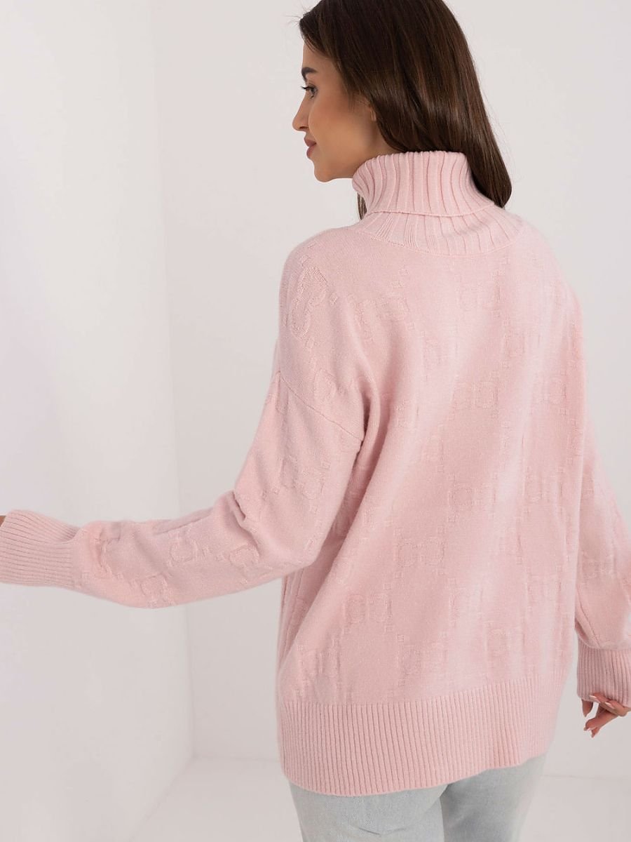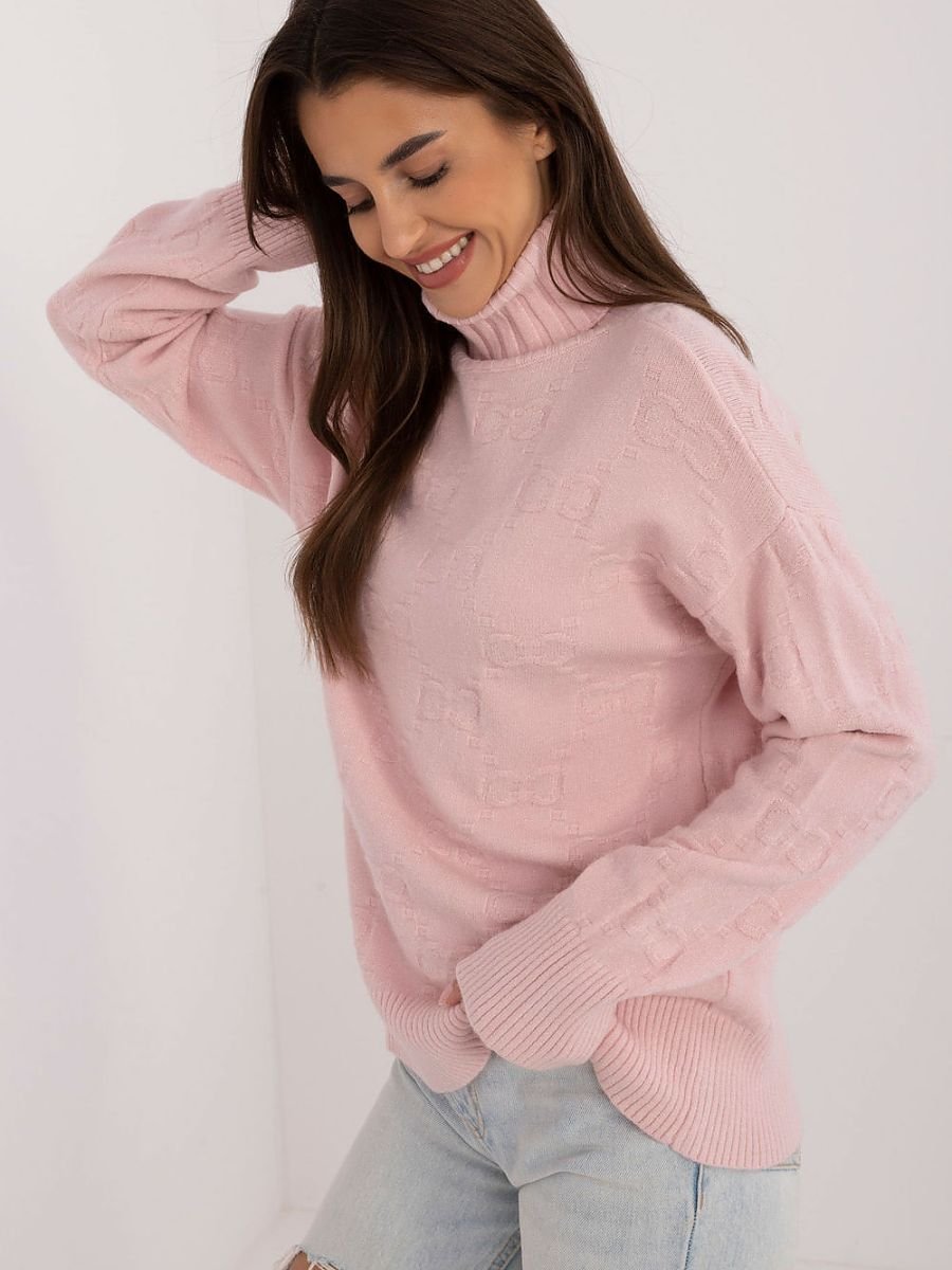 Damski sweter z golfem, idealny na codzienne okazje w stylu casual. Wykonany z materiału o urozmaiconej fakturze, co dodaje mu wyjątkowego charakteru. Dominującym materiałem jest mieszanka akrylu, poliestru i poliamidu, co zapewnia trwałość i komfort noszenia. Sweter ma standardową długość i długie rękawy, co czyni go uniwersalnym wyborem na chłodniejsze dni.