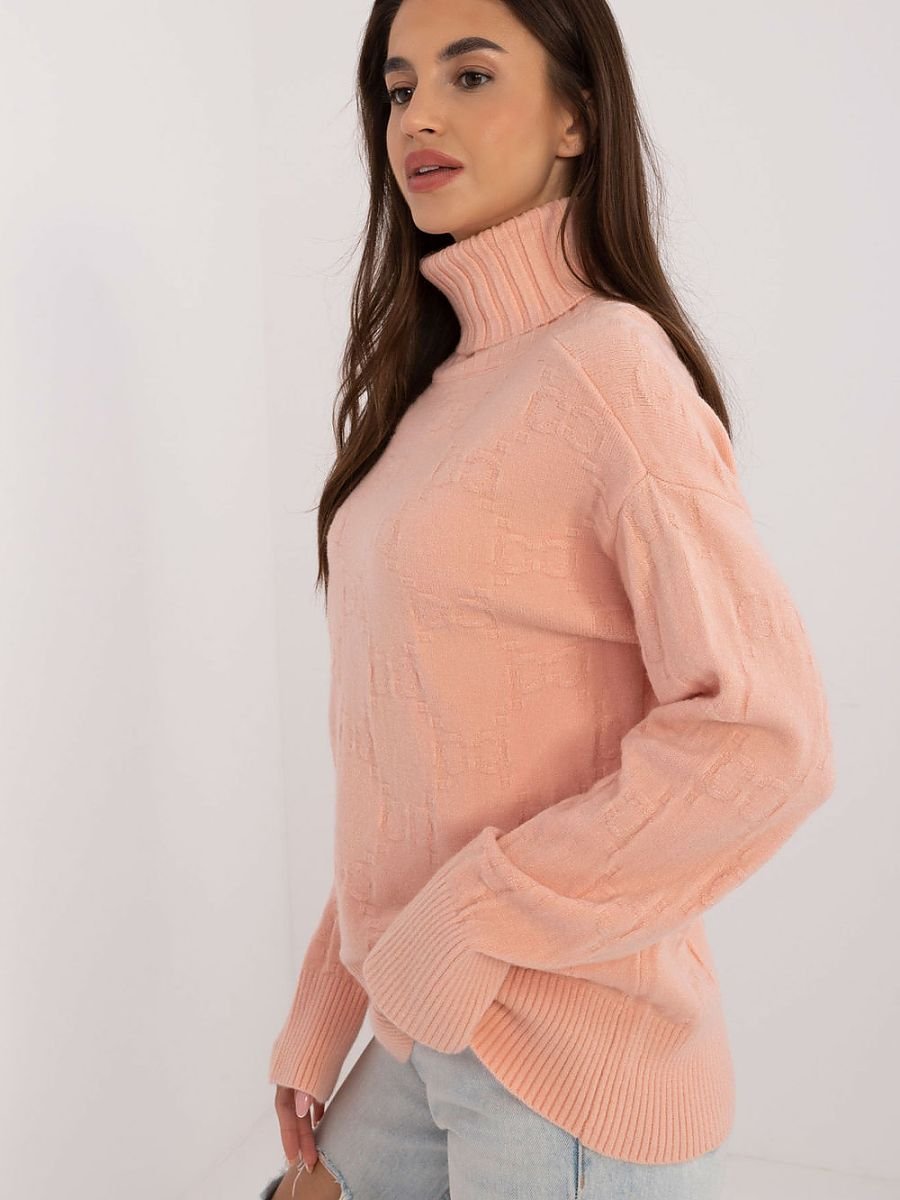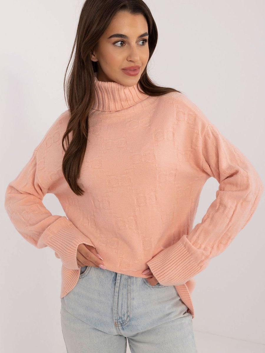 Damski sweter z golfem, idealny na codzienne okazje w stylu casual. Wykonany z materiału o urozmaiconej fakturze, co dodaje mu wyjątkowego charakteru. Dominującym materiałem jest mieszanka akrylu, poliestru i poliamidu, co zapewnia trwałość i komfort noszenia. Sweter ma standardową długość i długie rękawy, co czyni go uniwersalnym wyborem na chłodniejsze dni.