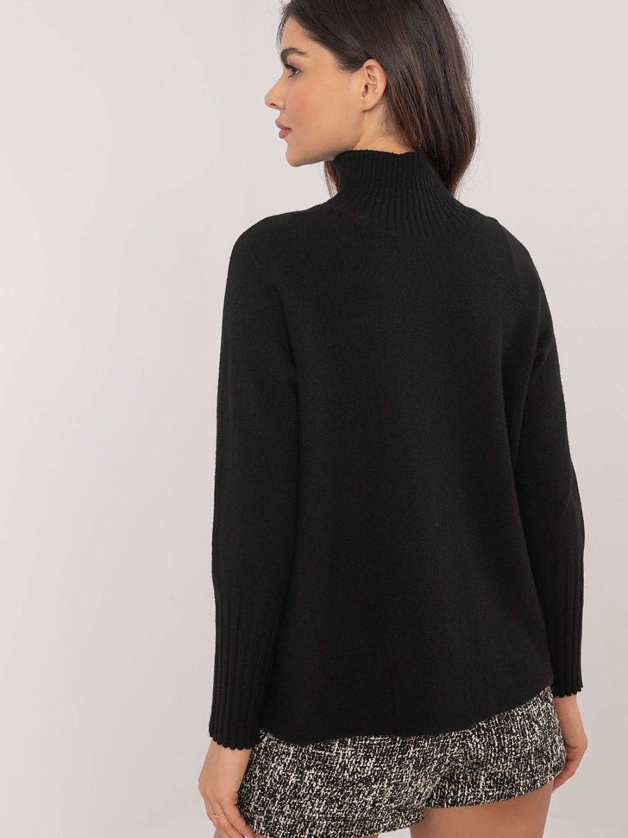 Sweter damski z golfem w stylu casual, doskonały na co dzień i do pracy. Wykonany z miękkiej mieszanki wiskozy, nylonu i poliestru, zapewniającej komfort oraz delikatne dopasowanie do sylwetki. Sweter o standardowej długości ma gładki wzór, co dodaje mu uniwersalnego charakteru. Długi rękaw zakończony szerokim ściągaczem podkreśla elegancki, a zarazem swobodny styl. Golf przy szyi zapewnia ciepło i jest idealnym wyborem na chłodniejsze dni. To wszechstronny element garderoby, który świetnie komponuje się zarówno ze spodniami, jak i spódnicami, stanowiąc stylowy wybór na różne okazje.