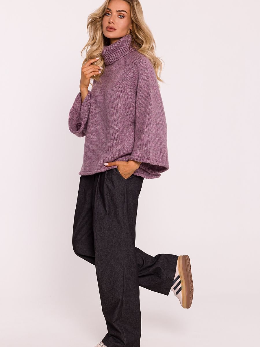 Sweter z golfem, wykonany z miękkiej przędzy z włosem, zapewnia wyjątkowy komfort i ciepło. Sweter typu oversize, zakładany przez głowę, o luźnym kroju, który gwarantuje swobodę ruchów i stylowy wygląd. Szerokie rękawy o długości 7/8 dodają mu nieco nonszalanckiego charakteru, idealnie wpisując się w modny, casualowy styl. Sweter został zaprojektowany i uszyty w Polsce, co świadczy o dbałości o detale oraz najwyższej jakości wykonania.
