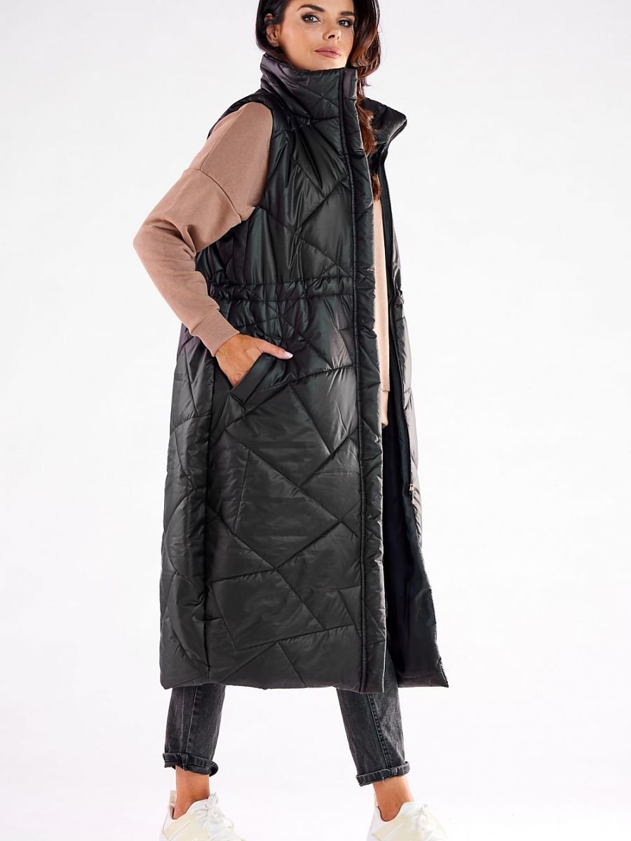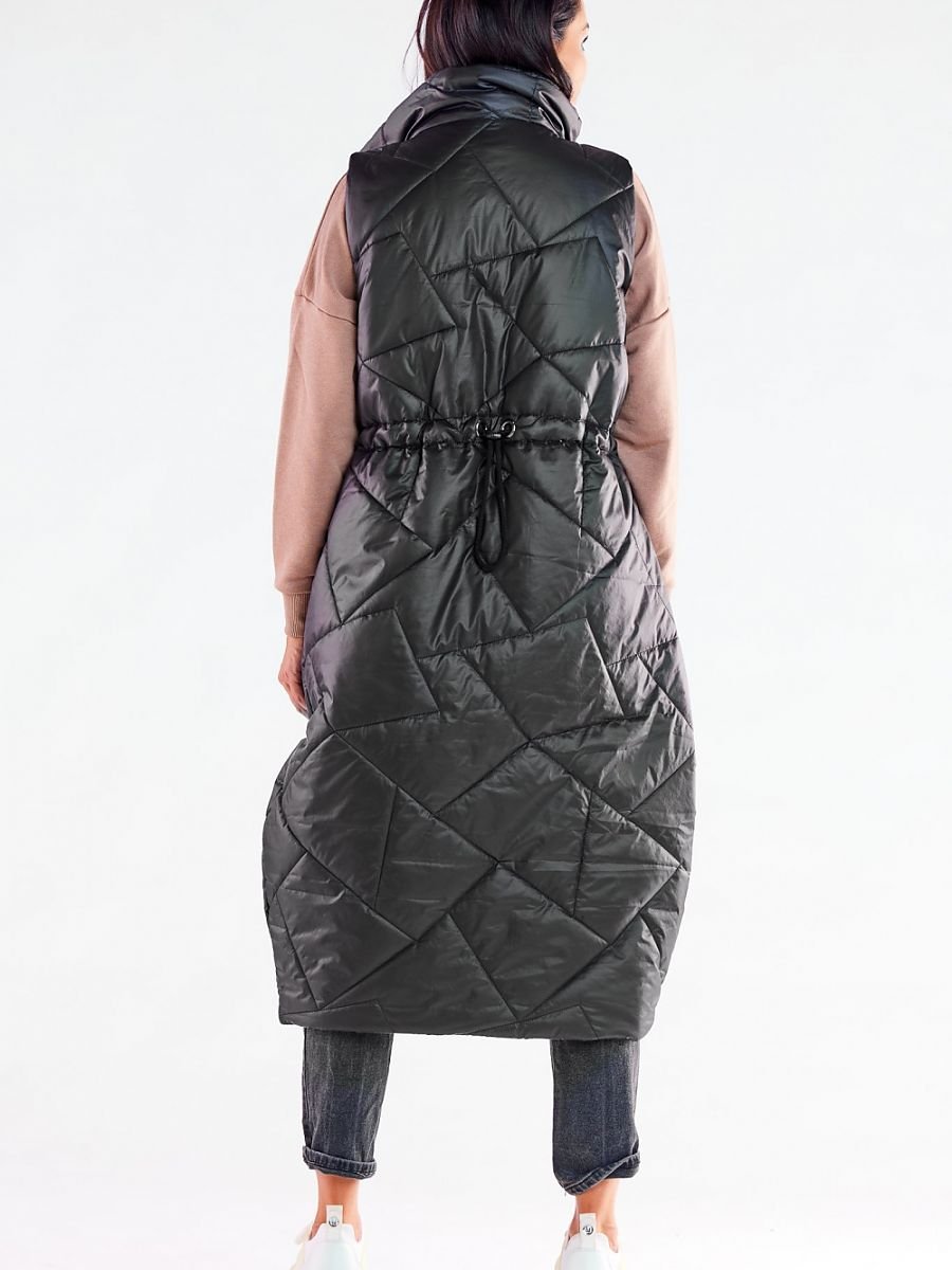 Kamizelka o opływowym, oversizowym kroju to idealny wybór na chłodne, jesienne dni. Jej oryginalny kształt może być podstawą do stworzenia wielu ciekawych stylizacji. Zapinana na zamek, dodatkowo ściągana w pasie pozwala dopasować ja do każdego rodzaju sylwetki. Kamizelka w całości na podszewce.