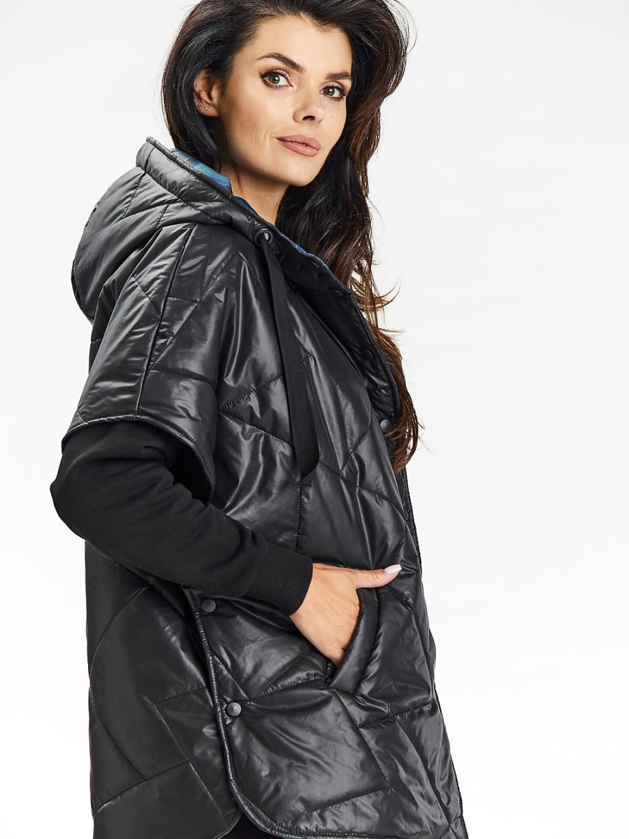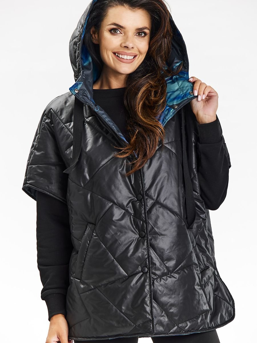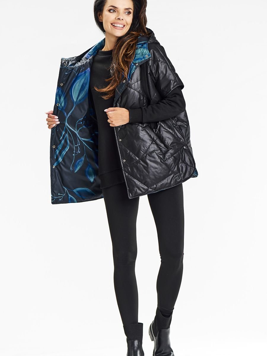 Kimonowa kamizelka z kapturem zapinana na napy. Elegancka kimonowa kamizelka z kapturem to połączenie stylu i funkcjonalności. Zapewnia komfortowy, luźny krój, idealny do codziennych stylizacji. Oryginalna podszewka z nadrukiem dodaje jej unikalnego charakteru, a napy gwarantują łatwe użytkowanie. Doskonała ochrona przed chłodem na co dzień.