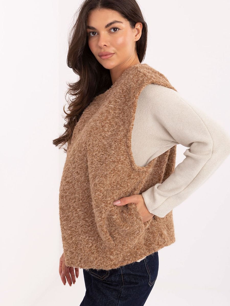 Damska kamizelka typu boucle bez zapięcia to modna i praktyczna propozycja w casualowym stylu, idealna na co dzień. Wykonana z poliestru, wyróżnia się charakterystyczną, urozmaiconą fakturą materiału, która nadaje całości oryginalnego charakteru. Standardowa długość zapewnia wygodę i swobodę ruchów, a wsuwane kieszenie dodają funkcjonalności. Kamizelka świetnie sprawdzi się w sezonie jesienno-zimowym jako warstwa wierzchnia do codziennych stylizacji. Niezależnie od tego, czy zestawisz ją z koszulą, swetrem czy bluzką, nada Twojemu outfitowi modnego, a zarazem wygodnego charakteru.
