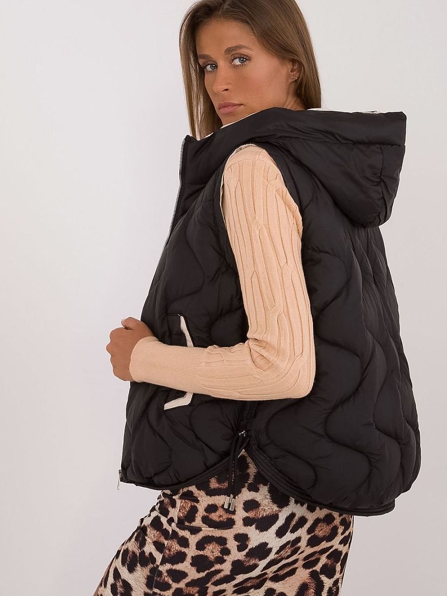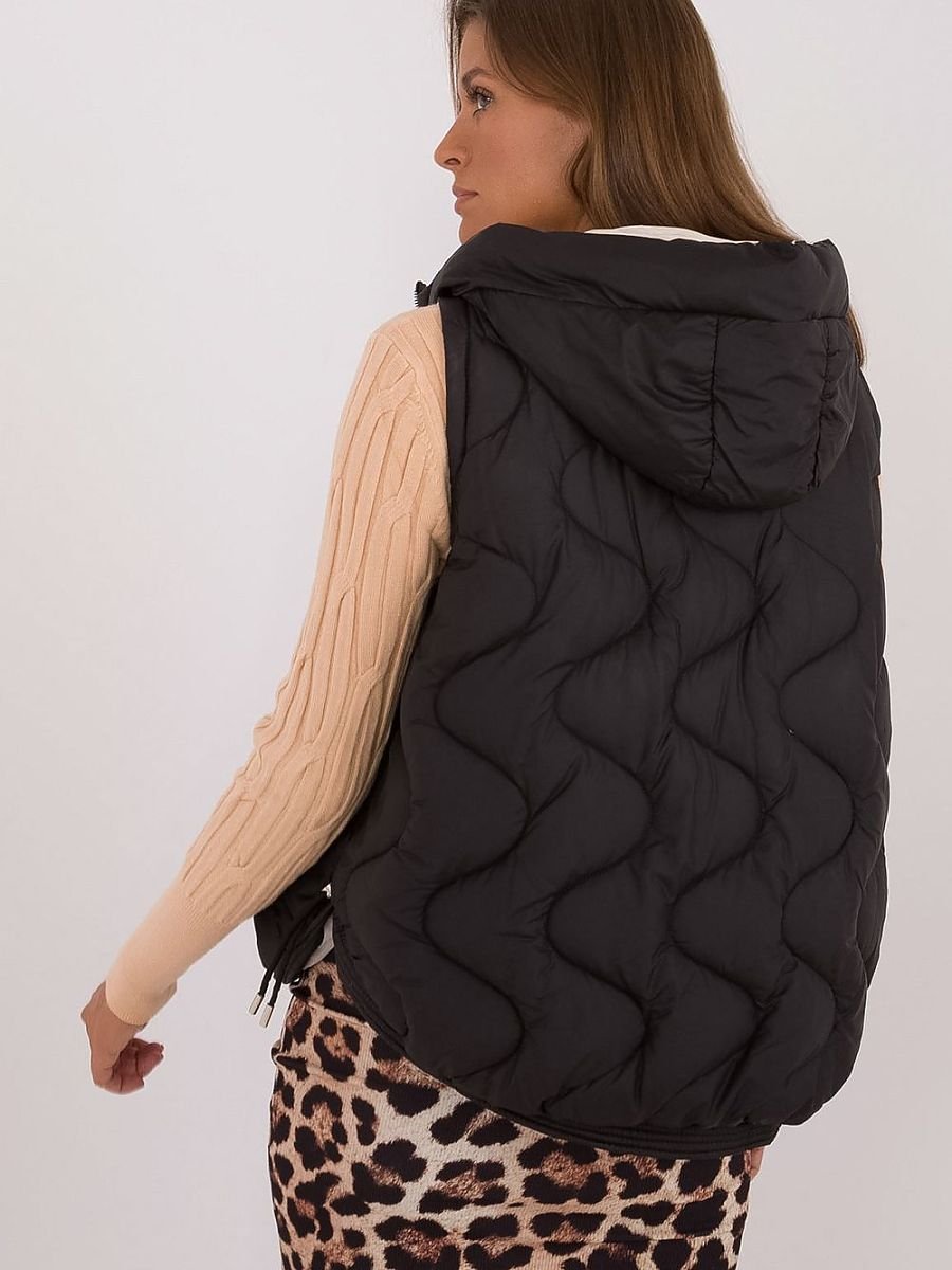 Damska pikowana kamizelka puchowa o gładkiej fakturze, wykonana z poliestru. Idealna na codzienne, casualowe stylizacje, zapewnia komfort i ciepło w chłodniejsze dni. Kamizelka jest wypełniona syntetycznym ociepleniem, które skutecznie chroni przed zimnem, jednocześnie będąc lekkim i wygodnym. Wyposażona w praktyczny kaptur, który dodaje funkcjonalności i stylu. To doskonały wybór dla kobiet ceniących wygodę, ciepło i modny wygląd w codziennych zestawach.