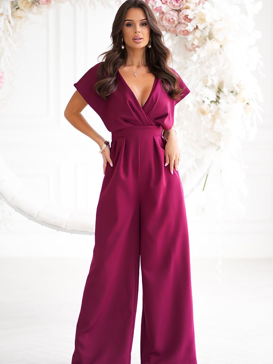 Stylowy kombinezon z odciętym pasem i szerokimi nogawkami. Rękawy rozkloszowane opadające na ramiona. Idealnie skrojone nogawki wydłużają sylwetkę, a szeroki pas wyszczupla talię. Kombinezon zapinany na kryty zamek.