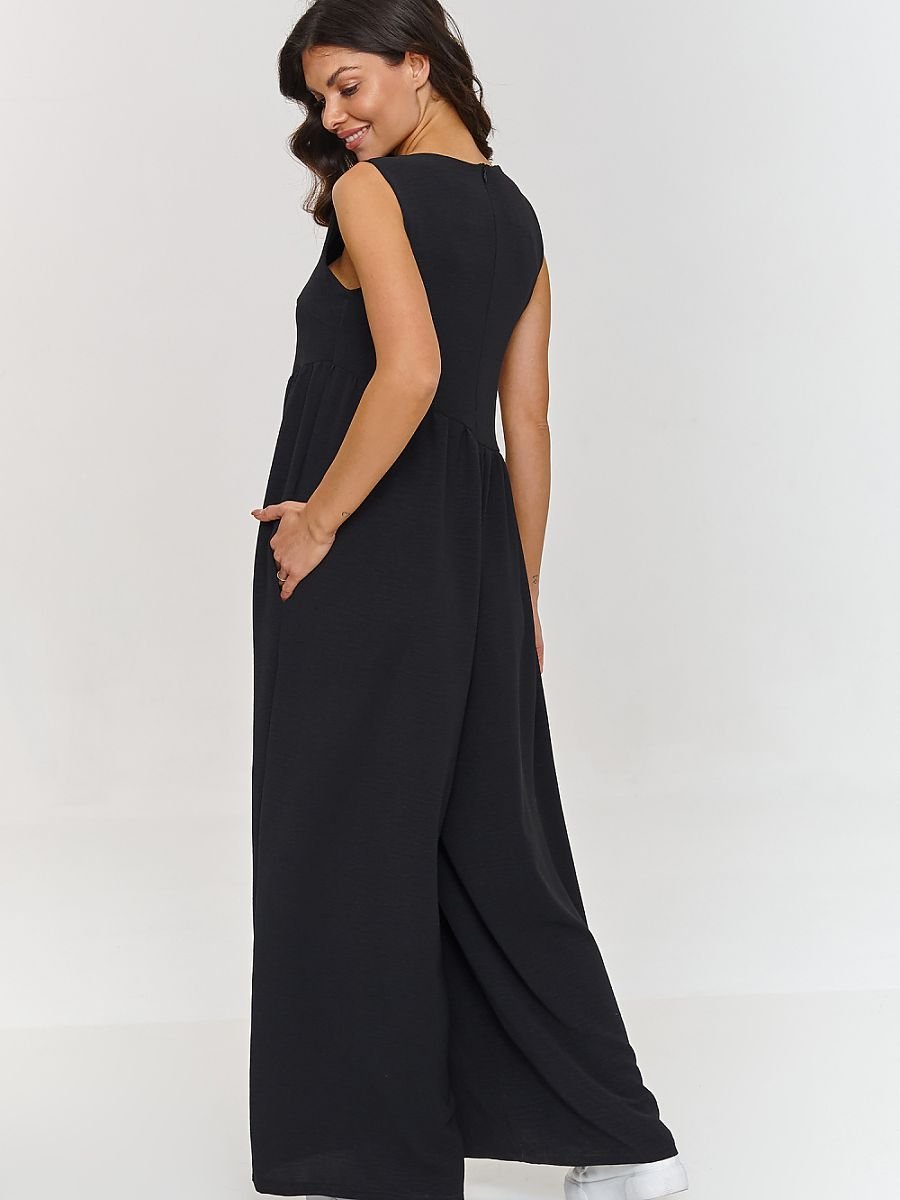 Ten kombinezon maxi to idealny wybór dla kobiet, które szukają wygodnego, a zarazem stylowego rozwiązania na ciepłe dni. Ma luźny krój, który zapewnia maximum wygody oraz na wysokości tali ukośne przeszycie tworzące delikatne fałdy. Szerokie nogawki dodają całości lekkości i elegancji, tworząc idealną opcję na codzienne stylizacje lub letnie wyjścia. Model wyposażony jest w kieszenie, co dodaje mu funkcjonalności i praktyczności. Kieszenie stanowią świetne rozwiązanie, gdy chcesz mieć pod ręką najpotrzebniejsze drobiazgi, nie rezygnując z eleganckiego wyglądu. Wykonany z przewiewnego materiału, który jest nie tylko przyjemny w dotyku, ale także praktyczny i przewiewny. Kombinezon posiada okrągły dekolt, który zapewnia wygodę i stylowy wygląd. Nasz kombinezon maxi z szerokimi nogawkami to doskonała opcja na każdą okazję, kiedy zależy Ci na modnym, ale zarazem wygodnym rozwiązaniu. Dzięki luźnemu krojowi, funkcjonalnym kieszeniom i lekkiemu materiałowi, kombinezon stanie się Twoim ulubionym wyborem na wiosenne i letnie dni, gwarantując zarówno wygodę, jak i styl.