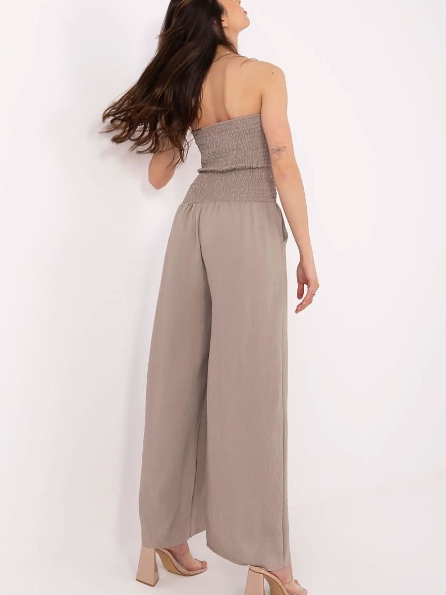 Stylowy i wygodny kombinezon idealny na codzienne wyjścia. Uszyty z przewiewnej i miękkiej wiskozy, gwarantuje komfort noszenia przez cały dzień. Długa, luźna forma ze szerokimi nogawkami i hiszpański dekoltem tworzy nowoczesny, swobodny look. Gładki materiał podkreśla minimalistyczny charakter modelu, a marszczenia w górnej części dodają mu subtelnej lekkości. Brak zapięcia ułatwia szybkie zakładanie, a boczne, wsuwane kieszenie zwiększają funkcjonalność. Idealny wybór dla kobiet ceniących styl i wygodę w jednym.